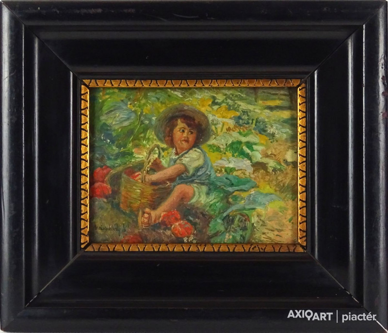 ...póczky Á. jelzéssel : Gyümölcs szedő kisfiú