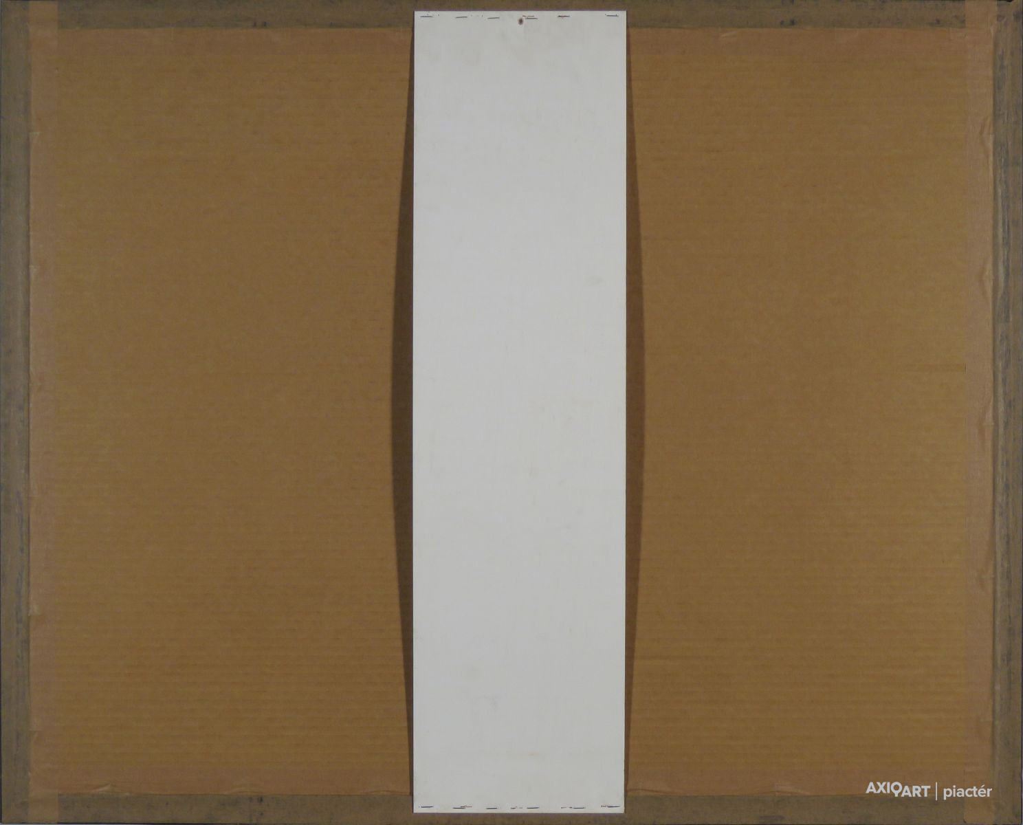 [FKA431/Bp305/89] A kép mérete: 14,5 x 13 cm keret nélkül. Készült: Akvarell, Papír A kép Hajdú László (Léva, 1938) alkotása. Jelezve jobbra fent "Hajdú L. 81" A festmény jó állapotban van. Keret: Ép Kortárs magyar művészeti lexikon I-III. Festő. Léva, 1938. dec. 17. 1957-63: MKF, mesterei: Domanovszky Endre, Kádár György, Barcsay Jenő. 1964-ben Stuttgart; München; 1971-ben Francia-, Olaszország; 1977-ben Pocitelju (YU) Nközi Művésztelep; 1965-82 között adriai-, égei-, földközi-tengeri utazásokat tett. 1966-69 között Derkovits-ösztöndíjas. 1984-ben elnyerte a Szentendrei Grafikai Műhely nagydíját. Alapító tagja a Szentendrei Grafikai Műhelynek, az Art'éria Galériának. 1989-től 1991-ig a Belvedere c. művészeti folyóirat képszerkesztője. 1968-tól Szentendrén él. Soha nem a naturalisztikus formától vagy konkrét tájélményből indul el a lírai absztrakt foltfestészet felé, hanem a természeti erők: víz, levegő, föld formáját kutatja. A 80-as évekre egy új tendencia mutatkozik az oeuvre-ben: az érzékeny, indulatosan megfestett felület mögül idolok, ferde tornyok sejlenek fel, sarkukra állított négyzetek állnak a pszeudohorizonton. A 90-es évek elején összefoglaló igényű kiállítást rendez a budapesti Francia Int.-ben, neogeometrikus sorozataiban Saint-John Perse gondolataira hivatkozva. Ezeken a munkákon mediterrán hangulatú emlékanyagra utalnak a mértanias formák. Négyzetei nem síkgeometriai jelek, hanem kultúrhistóriai szimbólumok. A 90-es évek derekára Hajdú festészete egyre filozofikusabbá válik. Tábláin okkerek, sárgák, szürkék különféle árnyalatai töltik ki a képmezőt. A felületet sötét, határozott vibrálások, diagonálisok, horizontális rendek tagolják. Archetipikus hangulatú munkáinak legjellemzőbb vonása a tér virtuális felosztása. Hajdú piktúrája mégis tartalmat szociális vonatkozásokat, amennyiben festészetét a monetáris világ elleni halk, de határozott tiltakozásnak tekinti. Ek.: 1975: Művésztelepi G., Szentendre, (kat.); 1977: Műcsarnok (kat.); 1986: Hotel Kastély G., Szirák; 1989: Dorottya u.-i G. (kat.); 1990: Francia Int., Bp., (kat.); 1991: Kunstsammlungen der Stadt Limburg (Farkas Ádámmal és Regős Istvánnal); 1992: Art'éria G., Szentendre; 1996: Kanzlei Gartner; Stübel, Baumann & Partner, Stuttgart; 1997: Kaposfüredi G., Kaposfüred. Vcsk: 1966: Stúdió '66, Ernst Ml; 1971: Új művek, Műcsarnok; 1976: Szentendrei Művészet, MNG; 1978: Festészet '77, Műcsarnok; 1983: Szentendrei Tárlat, Szentendrei Képtár, Szentendre; 1985: El Studio Grafico de Szentendre, Madrid; 1985: Szentendrei Tárlat, Szentendrei Képtár; 1986: Delmenhorst Zeitgenössische Kunst aus Ungarn; 1987: Art'éria G. kiállítása, Stadtm., Woerden (NL); Szentendrei Tárlat, Szentendrei Képtár, Szentendre; 1990: Otto Nagel, Hans der Staatlichen M., Berlin; 1993: Szentendre művészete, G. Contact, Böblingen (D); Az Art'éria művészei, Vigadó G.; 1996: Az én Múzeumom, A Vass-gyűjtemény, Ernst M.; 15 magyar művész, Hans Des Deutschen Oftens, München. Mk: Dajmanich J. M., Szolnok; Ferenczy M., Szentendre; MNG; Nközi Modern M., Hajdúszoboszló; R. Riz Collection, Bolzano; Kim Colleciton, Szöul. Km: mozaik (1970, Lábatlan, Papírgyár); gobelin (1970, Lábatlan, Papírgyár); mozaik (1983, Bp., Pest megyei Köjál) Irod.: Mucsi A.: Előszó Hajdú kiállításához (kat., bev., Szentendre, 1975); Mucsi A.: Előszó Hajdú kiállításához (kat., bev., Műcsarnok, 1977); Horváth Gy.: Hajdú képei a Műcsarnokban, Új Tükör, 1977. márc. 6; Hann F.: Mai mitológiák Hajdú kiállítása a Dorottya utcában, Belvedere, 1989/2; Wehner T.: (kat., előszó, Dorottya u. G.); Van Dam J.: Utazás a háromszög körül. Hajdú képeiről, MŰV. 1989/9; Hann F.: (kat., előszó, Francia Int., Bp.); Hann F.: HL-GEO, Playboy G., 1993; Wehner T.: Ék-képek. Hajdú festészetéről, Kortárs, 1994/7.; Sík Cs.: Mégsem veszett el. Hajdú retrospektív katalógusa, 1996; Krimmel G.: Helyzetek és érzetek. Hajdú festészete, ÚJ, 1997. máj-jún. Portréfilm: Gulyás J.: Hajdú kiállítása a Kaposfüredi Galériában MTV, 1997 (H.F.) Magyar festők és grafikusok életrajzi lexikona I-II. Műgyűjtők és kereskedők kézikönyve Léva, 1938 - Festő. Székesfehérvárott Áron Nagy Lajos szakkörében ismerkedett meg a rajzolás és festés alapelemeivel. A bp.-i Képzőművészeti Főiskolán Domanovszky Endre és Kádár György tanítványa volt. A főiskola után két évig általános iskolában tanított. 1969 óra Szentendrén dolgozik és azóta szerepel különböző hazai és külhoni tárlatokon. Sokszor szerepelt országos tárlatokon, Stúdió Kiállításokon. 1974-ben bemutatkozott Párizsban is, a fiatal magyar festők tárlatán. 1967-1970 k. Derkovits-ösztöndíjban részesült. Színgazdag műveinek tárgya a természet és a tenger. Lendületes ecsetvonásokkal alakít ki vibráló, lüktető foltokat. Festői előadása a nonfiguráció kereteiben mozog. Táblaképei mellett jelentősek kárpitjai, kék, fekete, szürke, barna színekre komponált faliszőnyegei. Mozaiktervezéssel is foglalkozik. (MÉ, M.M.: Műv.-1970/9, K.Gy.: műv.-1970/10, Máv.-1977/1) Magyar festők és grafikusok életrajzi lexikona I-II. Léva, 1938 - Festő. Székesfehérvárott Áron Nagy Lajos szakkörében ismerkedett meg a rajzolás és festés alapelemeivel. A budapesti Képzőművészeti Főiskolán Domanovszky Endre és Kádár György tanítványa volt. A főiskola után két évig általános iskolában dolgozott, mint pedagógus. 1968 óta Szentendrén dolgozik és azóta szerepel hazai és külhoni tárlatokon. Sokszor szerepelt országos bemutatókon, Stúdió kiállításokon. 1974-ben bemutatkozott Párizsban is, a fiatal magyar festők tárlatán. 1967-1970 között Derkovits-ösztöndíjban részesült. Német-, Francia-