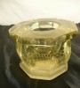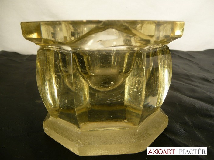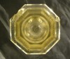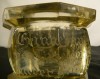 [A059/X046] Nyolcszögletű régi gótbetűkkel feliratozott antik asztali tintás üveg. Nagyon régi, valószínűleg az 1800 évek elejéről származik. Egy nagyobb csorbulás látható az oldalán fent. Apró pici lepattanások is érezhetőek rajta. Magasság: 7.5 cm Szélesség: 10 cm