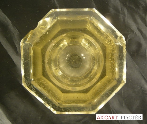 Nyolcszögletű régi gótbetűkkel feliratozott antik asztali tintás üveg. Nagyon régi, valószínűleg az 1800 évek elejéről származik.