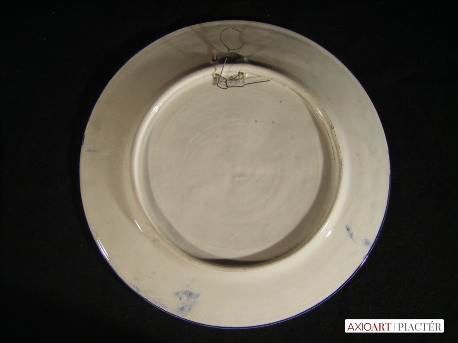 [K120/X043] Állapot: Ép, hibátlan 1900 környékéről való, kézi festésű, domború mintás, 5 angyal alakos vagy 5 zenélő kisgyerek látható a tál közepén. Egyik lanton játszik, a másik hegedül. Szélesség: 31 cm