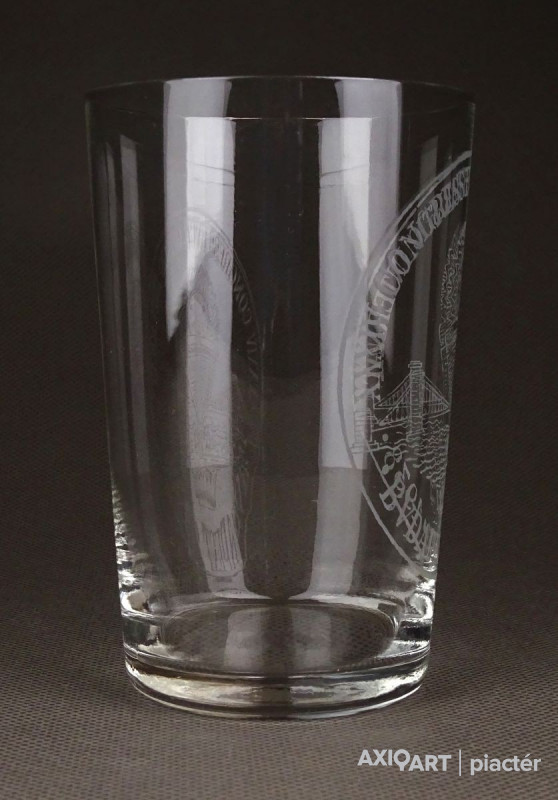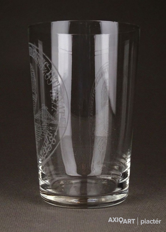 Régi, hibátlan állapotú üveg pohár, emlékpohár.