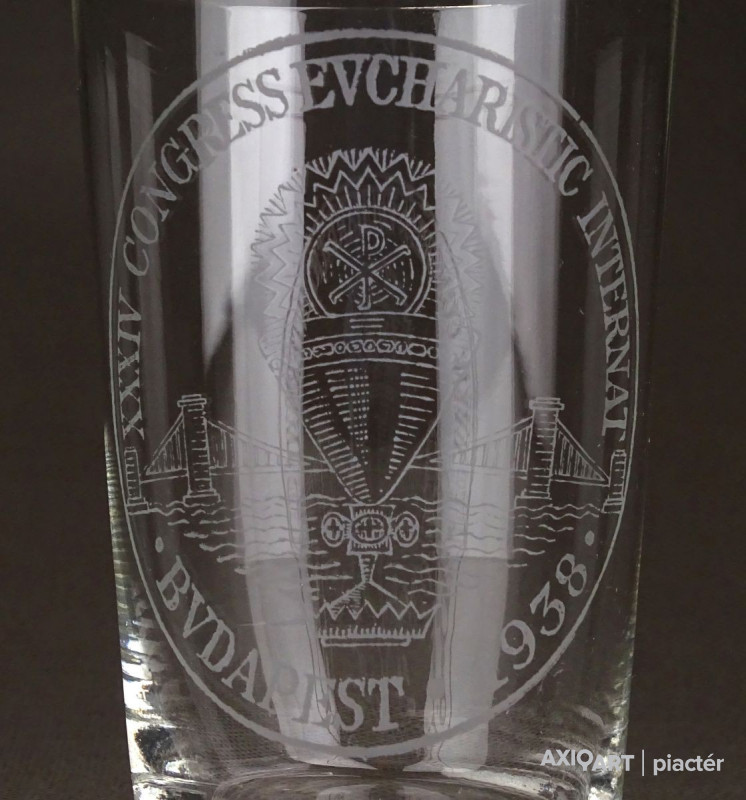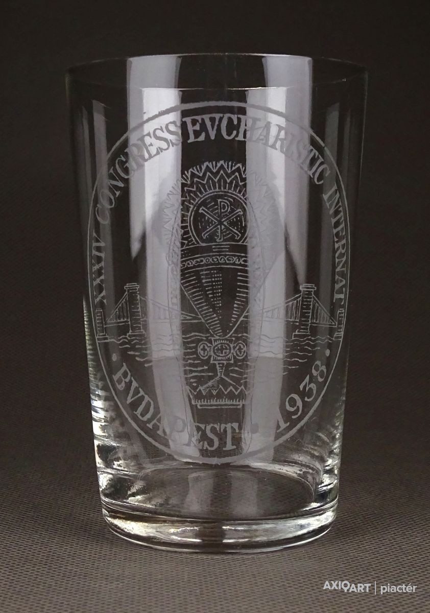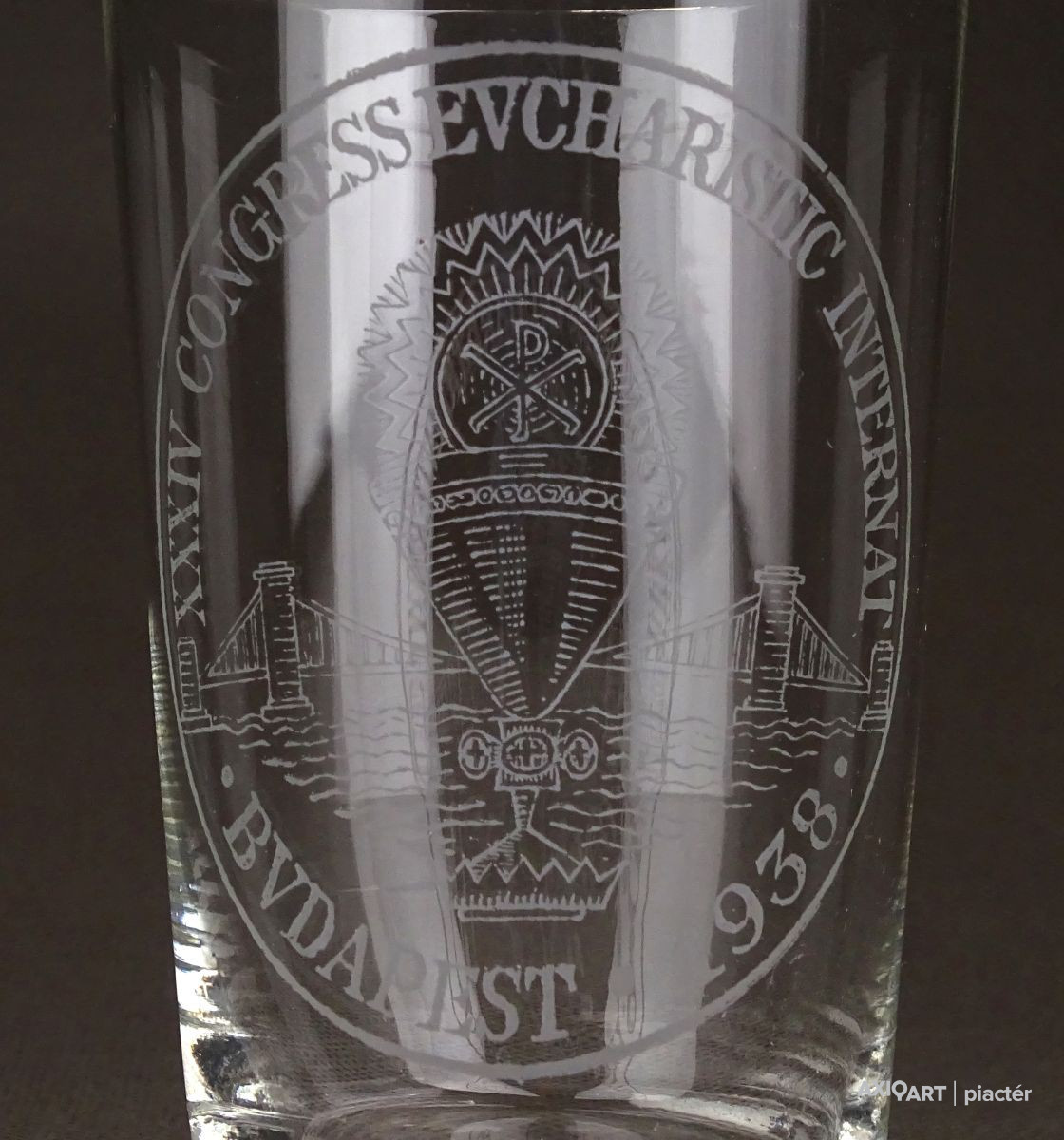 1938 Budapest XXXIV. Nemzetközi Eucharisztikus Kongresszus üveg pohár 10 cm