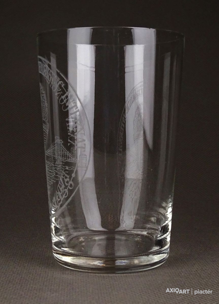 [1F770/VTR-3] Régi, hibátlan állapotú üveg pohár, emlékpohár. Oldalán Lánchíd kép és felirat: XXXIV CONGRESS EUCHARISTIC INTERNAT BUDAPEST 1938 Magasság: 10 cm Szélesség: 6.6 cm Súly: 0.085 kg