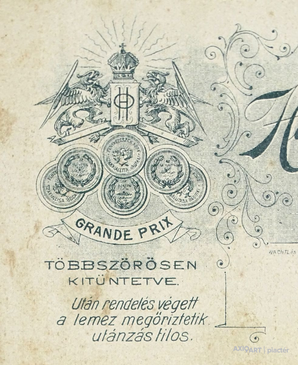 [0U764/X319] Antik, kartonra ragasztott, fekete-fehér fotográfia, melyen egy 20 fős monarchia korabeli férfiakból álló társaság látható egy szecessziós szalonban fotózva. Jelzés, felirat: GLÜCK JÓZSEF GYŐR Magasság: 32.5 cm Szélesség: 44 cm Súly: 0.155 kg Glück József Székesfehérvár, 1887. november 11. – Auschwitz, 1944. június: fényképészmester. Székesfehérvárott végezte iskoláit. Itt sajátította el a fényképészszakmát. Győrben a Deák Ferenc u. 13-as számú házban nyitott műtermet (1898). 1909-ben Münchenben mestervizsgát tett. Győr utcáiról, tereiről, a város változásairól művészi fényképfelvételeket készített. A Xántus János Múzeum őrzi 24x30 cm-es üvegnegatívjait és több pozitív nagyítását. Ezekről a lemezekről készültek azok a képek, amelyek a századforduló és a 30-as évek Győrét ábrázolják. Legalább 200 pótolhatatlan győri városkép megörökítése fűződik nevéhez. A korabeli fényképkiállítások majdnem mindegyikéről elismeréssel tért haza. 1926-tól a Magyar Fényképészek Országos Szövetségének elnöke. 1935-től a győri ipartestület gazdasági bizottságának elnöke, a fotószakosztály vezetőségi tagja. A Győri Ének-és Zeneegylet háznagya, a tűzoltótestület pénztárnoka, a mentőegyesület választmányának tagja. A Győri Neológ Izraelita Hitközség iskolabizottságának tisztségviselője, a város törvényhatósági bizottságának tagja. Innen zsidó származása miatt 1939-ben kizárták. Egy évvel később a városi ipartestület a felügyelőbizottságába választotta. Iparát 1942. május 1-jével megszüntették. 1944 májusában családjával együtt gettóba kényszerült, majd Auschwitzba deportálták. Forrás: https://www.gyorikonyvtar.hu/gyel/index.php/Gl%C3%BCck_J%C3%B3zsef