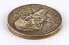[0F946/X043] Hibátlan állapotú, kétoldalas bronz érem. Egyik oldalon felirat: ACHATIUS BARCSAI DE NAGYBARCSA Másik oldalon felirat: ÉREMGYŰJTŐK HAJDÚ-BIHAR MEGYEI SZERVEZETE 1925 - 1988 Jelzés: TS TÓTH S. Szélesség: 4.2 cm Súly: 0.03 kg Tóth Sándor (1933) szobrász szobrász Születési hely: Miskolc Születési dátum: 1933     Mesterei: Hincz Gyula, Pap Gyula, Barcsay Jenő, Kisfaludi Strobl Zsigmond. 1951-1959: Magyar Képzőművészeti Főiskola, mesterei: Hincz Gyula, Pap Gyula, Barcsay Jenő, Kisfaludi Strobl Zsigmond. 1959-ben a művészeti főiskolák Tanácsköztársasági Pályázatának nagydíját nyerte el. 1959-1960-ban a Művészeti Alap ösztöndíjával a hódmezővásárhelyi telepen alkotott. 1961-ben Szegeden telepedett le és 1974-ig a Művészeti Gimnázium tanára. Ezt követően Nyíregyházán kapott műtermet, ahol alkotótevékenysége mellett eredményes szakköröket vezetett. Egy évtizedig volt a szabolcsi művészek szervezetének titkára. Számos szegedi és nyíregyházi szobrászművészt indított el a pályán. 1977-ben kezdeményezte a Nyíregyháza-sóstói Nemzetközi Éremművészeti és Kisplasztikai Alkotótelep alapítását, az Alkotótelepi Tanácsnak indulástól fogva tagja. Főiskolás éveiben 1954-től nyaranta a hódmezővásárhelyi, 1969-ben a zsennyei, 1971-1975 között a villányi, 1973-ban a kecskeméti és oronskói (PL), 1974-1976 között, 1983-ban, 1985-ben, 1991-ben a nyíregyháza-sóstói, 1975-ben a burgaszi (BG), 1976-ban a potsdami (Német Demokratikus Köztársaság) és a zamosci (PL); 1977-ben a rzeszówi (PL), 1988-ban a palangai (Litvánia), a dzintari-i (Lettország) és a zsdennyevoni (UA), 1988-ban a körmöcbányai, 1992-ben a klaipédai (Litvánia) művésztelepen dolgozott. Eredményes munkásságát számos elismerés jelzi: 1962: Szegedi Nyári Tárlat III. díja; 1963: Szegedi Nyári Tárlat II. díja; 1964: Alföldi Tárlat díja, Gyula; 1968: Szegedi Nyári Tárlat díja; 1969: Szocialista Kultúráért; 1970: Békéscsabai Alföldi Tárlat Nívódíja; 1972: Szegedi Nyári Tárlat díja; Szabadka Város díja; 1973: Békéscsabai Alföldi Tárlat Munkácsy Emlékérme; 1974: Firenzei Giorgio Vasari Nemzetközi Éremverseny 3. díja; 1975: Felszabadulási Pályázat III. díja, Hódmezővásárhely; 1982: Munkácsy-díj; 1984: Szegedi Nyári Tárlat díja; 1986: a Magyar Éremgyűjtők Egyesülete az év legszebb egyesületi érme kitüntetése; 1989: Iserlohn Város díja; 1991: VI. Pál pápa ezüst Emlékérme; 1995: Ravenna Város Aranyérme; 1996: Hatvani Portré Biennálé díja; 1997: Hadtörténeti Múzem Kiállítási díja; Szeged Megyei Jogú Város Polgármesteri Hivatala díja. Az 1986-1987-es tanévben az Egri Tanárképző Főiskola tanszékvezető főiskolai tanára volt. Első kiállításain a szobrászati alkotások mellett festmények és rajzok is helyt kaptak. Rézlemez-domborításai és kisplasztikái témáit leginkább családja életéből vette. Realista stílusú - ritkán absztrakt felfogású (Madarak és halak sorozat, 1972) - alkotásai leggyakrabban bronzból készülnek, de jól bánik más anyagokkal is. Korábban gyakran készített terrakotta, mészkő-, márvány- és faszobrokat. Számos köztéri munkát készített, melyek között emléktáblák, emlékművek, büsztök, önálló térplasztikák sorakoznak. Legmonumentálisabb alkotásaként tarjuk számon a máriapócsi Bazilita templom kapuját. Vert és öntött érmeket is készít. Jelentős emlékérmeinek és orvosi vonatkozású érmeinek száma. Forrás: artportal.hu