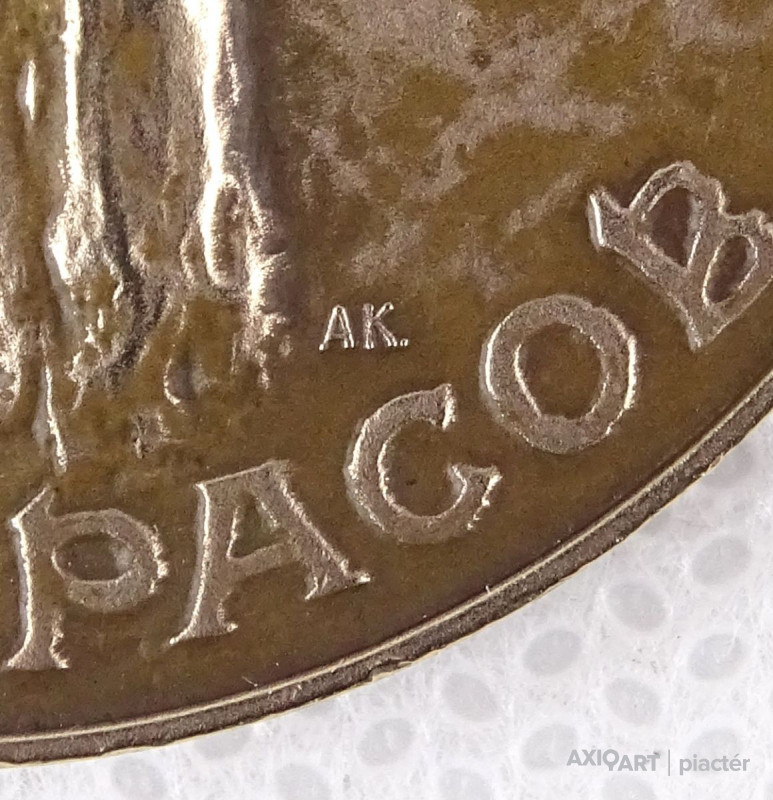 [1I390/X026] Hibátlan állapotú, jelzett bronz plakett szép bőrdíszműves bőr tokban. Elején plasztikus virágdíszítés mellett jelzés: KL Hátoldalán felirat: A KISZ. KIVÁLÓ PROPAGANDISTÁJA Súly: 0.485 kg Kutas László szobrász Budapest, 1936-04-17 Szerző: Matits Ferenc Gimnazistaként Sopronban Ágoston Ernő szabadiskolájában sajátította el a rajzművészet alapismereteit, majd 1954 és 1960 között a Magyar Képzőművészeti Főiskolára járt, ahol Gyenes Tamás és Pátzay Pál voltak a mesterei. Érzékletes mintázás, jó formaérzék, szellemes komponálás, választékos anyaghasználat tünteti ki plasztikai működését. A realista hagyományokra épülő, egyéni stílusát tükröző kő és bronz köztéri szobrokon kívül narratív kisplasztikákat, érmeket készít. A Magyar Nemzeti Bank pályázatain 11 alkalommal nyert emlékpénz készítésére megbízást. A firenzei Giorgio Vasari Nemzetközi emlékérem pályázaton 1974-ben I. díjat kapott, a Sportérem pályázaton 1975-ben II. és III. díjat, az Ezüstgerely pályázaton 1976-ban különdíjat érdemelt ki. 1979-ben a ravennai Dante Biennálé ezüst érmét, 1991-ben és 1995-ben pedig a soproni Országos Éremművészeti Biennálén Roisz Vilmos-díjat nyert. 1990 óta zsűritag a Ravennai Kisplasztikai Dante Biennálén. Figurális kisplasztikái egy-egy történetet mesélnek el. Az alakok kifejező megmintázása, környezetbe helyezése, dinamikus megfogalmazása elgondolkodásra késztetnek. Alkotásai népszerűek a hazai, valamint külföldi gyűjtők körében és szereztek a művésznek világhírnevet. Irodalom (kat. bev., Országos Széchenyi Könyvtár Galéria, 1994) ESZES A.: Otthon útközben. Műteremlátogatás ~nál, Anna, 1994/7. KOVÁCS P.: A tegnap szobrai, Szombathely, 1992 VEKERDY T.: ~ és szobrai, Várhely, 1997/3. Film BAYER I.: Művészportré, Civil Kurázsi Műsor, MTV, 1994-5. Egyéni kiállítások Egyéni kiállítások 1976 • Festőterem, Sopron • Haydn Művelődési Ház, Fertőd 1983 • Bank für Gemeinwirtschaft, Regensburg • Haydn Művelődési Ház, Fertőd • Munkás Művelődési Központ, Paks 1990 • Galerie Meerbusch, Düsseldorf 1993 • Városi Kórház Galéria, Grevenbroich (D) • Galerie Greve, Hamburg 1996 • G. P. Breughel, Venlo (gyűjt.) 1998 • Galéria, Tamási. Válogatott csoportos kiállítások Válogatott csoportos kiállítások Őszi Tárlatoknak és 1977-1999 • Országos Éremművészeti Biennáléknak. 1977-től vett részt a FIDEM nemzetközi kiállításain. A ravennai Dante Biennálén1975-ben, 1977-ben és 1979-ben vett részt. 1964 • Vásárhelyi Tárlatok 1954-1963, Magyar Nemzeti Galéria, Budapest 1968 • Az új Kecskeméti Művésztelep, Katona József Múzeum, Kecskemét 1970 • Kiállítás a Szakszervezetek Országos Tanácsa képzőművészeti pályázatára érkezett alkotásokból, Magyar Nemzeti Galéria, Budapest 1972 • 6. Balatoni Nyári Tárlat, Balatoni Múzeum, Keszthely 1974 • Vásárhelyi Tárlatok 1964-1973, Magyar Nemzeti Galéria, Budapest • G. Vasari nemzetközi Érembiennálé, Firenze 1976 • Balatoni Nyári Tárlat, Balatoni Múzeum, Keszthely 1979 • VI. Országos Kisplasztikai Biennálé, Pécs 1982 • Magyar mesterek, G. P. Breughel, Amszterdam 1990 • Ágoston Ernő tanítványai, Villamosipari Szakközépiskola Galéria, Sopron 1991 • Soproni Képes Céh Kiállítás, Collegium Hungaricum, Bécs • Soproni Képes Céh Kiállítás,Lajtaújfalu [Potzneusiedl] 1992 • Képes Céh Kiállítás, Lábasház, Sopron 1995 • Névjegy-érem kiállítás, OTP Galéria, Budapest 1996 • Képes Céh Kiállítás, Lábasház, Sopron. Művek közgyűjteményekben Művek közgyűjteményekben Királyi Éremtár, Stockholm Liszt Ferenc Múzeum, Sopron Városháza Gyűjteménye, Firenze Windsor Palota Gyűjteménye.  Forrás: artportal.hu