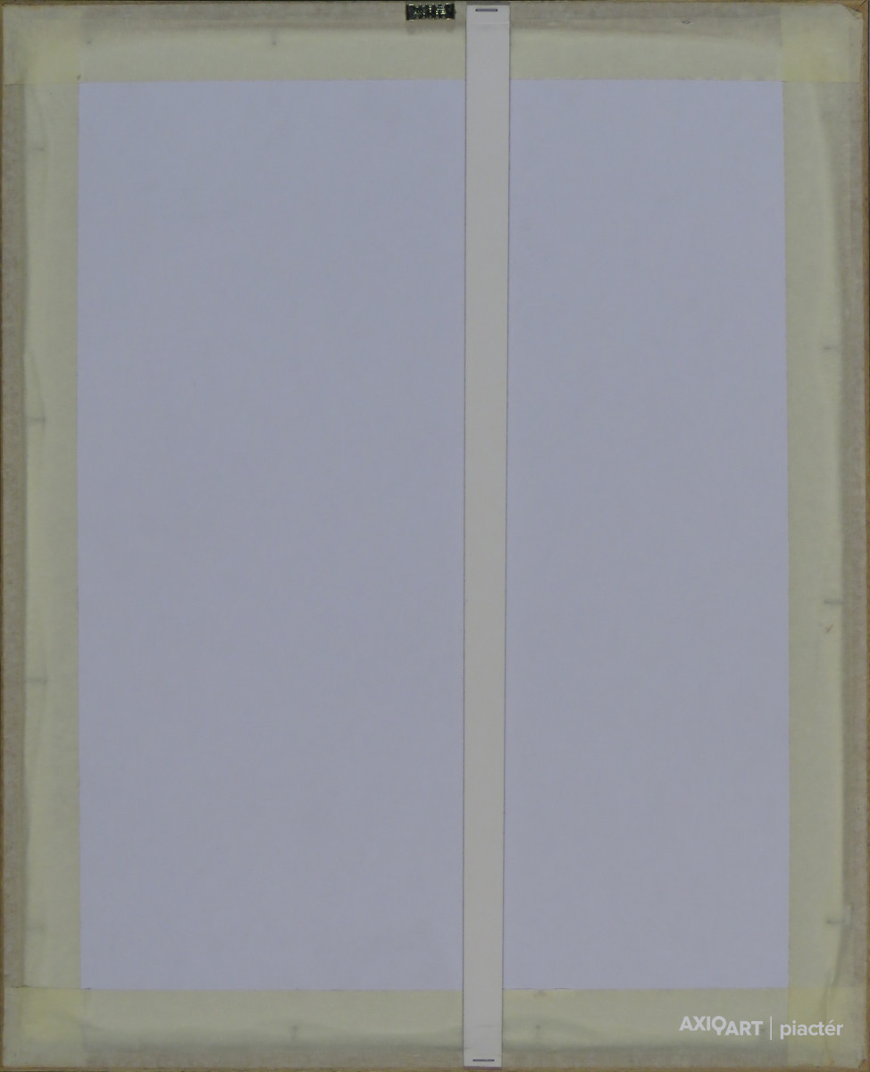 [1Y029/Z018] Olaj farost festmény, üveglap mögött, hibátlan képcsarnokos keretben. Hátoldalán Képcsarnok Vállalat papír címkéje: A művész neve: SCHÉNER MIHÁLY A kép címe: TÁJ Magasság: 66.5 cm Szélesség: 86 cm Súly: 6.54 kg Schéner Mihály festő, grafikus, szobrász, keramikus, bábtervező Medgyesegyháza, 1923-01-9 Elhalálozott: Budapest, 2009. május 11. Honlap: http://www.kormendigaleria.hu/kiadvany.html 1942-1947: Magyar Képzőművészeti Főiskola, tanára: Rudnay Gyula. 1978: Munkácsy-díj; 1984: érdemes művész; 1989: kiváló művész; 1995: Kossuth-díj. 1992-től a Magyar Művészeti Akadémia, 1993-tól a Széchenyi Irodalmi és Művészeti Akadémia tagja. 1956-ig tanított. 1982: Nagyatádi Faszobrász Alkotótelep, 1985: Nemzetközi Acélszobrász Alkotótelep, Dunaújváros. A stílusában felismerhető, mégis sokféle műtárgyat létrehozó ~ gazdag, állandóan alakuló életműve a folyton változó világban helyét kereső, az alkotói szabadságot megvalósító XX. századi képzőművész példázata lehetne. Magát expresszív-szürrealista alkotónak nevezi. Egyaránt dolgozik festékkel, textillel, fával, fémmel. Rajzol, szerkeszt, farag, épít, gyúr, varr és ragaszt, felhasználja a mézesbábok öntőformáit. Festő, rajzoló, textilszobor- és bábkészítő, fazekas, asztalos, esztergályos. Háromlépcsős folyamatban gondolkozik: rajzban tervez, majd fest, szobrot készít, “formába önt”, mindig a végső plasztikai megoldást keresi. Ami állandó és mégis játékosan változékony megjelenésű Schéner művészetében, az a gyermekkori emlékek által meghatározott népi mesterségek iránti tiszteletet kifejező motívumkincs, a tárgyi folklór formakészlete, amely már-már kézjegyként ismétlődik munkáin. Mitologikussá nőtt képzelete új lényeket teremt, pl: a Pigulát, amely disznótestű, emberfejű teremtmény. Schéner festményein a szürrealista motívumokat konstruktív szerkezetbe rendezi, a geometriát és az organikus természeti motívumokat egyaránt beépíti műveibe. A népi, népművészeti formakincsből merített lovas huszárok, betyárok, szegénylegények cifra szűr mentéje, piros csákója, fekete csizmája, az önálló életet élő zsinórdíszek és mézeskalács bábok, a kiskocsik a gyermekkori vásárok, búcsúk színes forgatagába vezet. A primér motívumokat aztán felváltják a vastagon felhordott felületbe karcolt jelek, vonalhálózatok, amelyek a játszó gyermek homokba rajzolt ábráit, a pásztorember fába vésett üzeneteit, az ősember barlang falába rótt mágikus jeleneteit idézik meg. A művész pillanatnyi érdeklődésének megfelelően a színek búvópatakként tűnnek el és jelennek meg ismét. A 60-as években leginkább a formákkal való játék érdekelte, a festmények felülete egyre gazdagodott: a táblaképek felületén applikációk jelentek meg, vagy lemállasztott rétegek hagyták maguk után hiányukat, motívumok nélküli ősformák, archetipikus képzetek bukkantak fel művészetében. A véletlenszerűnek látszó rétegekkel való játék azonban tudatos komponálás eredménye, amely később nyilvánvaló ritmusnak és formai szerkesztettségnek adja át a helyét, mint a Törvénytáblák c. sorozaton. A különböző művészi kifejezési formák egymásra termékenyítő hatással vannak, át- meg áthatják egymást. Textilszobrai, amelyekkel új műfajt teremtett, ugyanazzal az automatikus, expresszív-szürrealista módszerrel készülnek, mint festményei. A hagyományosan a népművészetben alkalmazott anyag, a filc lehetőséget ad a népi formakincs felelevenítésére, amely azonban a művész különös szürrealista átiratában jelenik meg. A szívekkel kivarrt, zsinórdíszes Posztókotlós c. művén mézesbábok lógnak, hátán huszárok lovagolnak. Egész sor textilből készült kéz-plasztikát alkot, amelyeket az ujjakra rávarrt díszekkel öltöztet, személyesít meg. A színes-különös világból aztán ~ újra puritán képi és formai rendbe juttatja el a nézőt, majd nemsokára tépett, gyűrt, vágott, csorgatott, repedezni hagyott szenvedélyesen vonagló képi felületeket hagy hátra. Schéner készített apró gyermekjátékokat, térstruktúra-tereket, mászókákat is. A magyar népi formák mellett szürreális játékaiban gyakran alkalmaz görög mitológiai alakokat, “elkentaurosodott” lovakat, Gorgó-fejeket, sellőket, hárpiákat, Pán-ábrázolásokat. Schéner nemcsak saját művészetéről publikál, hanem művésztársairól is számos írása jelenik meg, elsősorban az Új Auróra c. folyóiratban, amelynek egy ideig főmunkatársa volt. Irodalom kiállítása, Magyar Építőművészet, 1962/4. Húsz év után, Művészet, 1965/4. BOZÓKY M.: ~, Tiszatáj, 1968/5. PERNECZKY G.: Nincs uborkaszezon, Élet és Irodalom, 1969. augusztus 8. BARÁNSZKY-JÓB L.: ~, Művészet, 1969/9. LÁSZLÓ GY.: ~ kaposvári kiállítása, Jelenkor, 1969/4. MAJOR M.: Pásztorok, betyárok, huszárok - kezek, Tükör, 1970. szeptember 15. FRANK J.: Bemutatjuk ~t, Élet és Irodalom, 1972. május 6. ról kiállítása ürügyén, Képzőművészeti Almanach, Budapest, 1972 Sötétkék kokasok, Élet és Irodalom, 1973. szeptember 9. MAJOR M.: ~ játékai, Élet és Irodalom, 1974. július 27. BARTA J.: Egy különös művész, Alföld, 1974/6. VADAS J.: Szárnykészítők, Élet és Irodalom, 1975. október 4. JUHÁSZ F.: A halál ellen játszani, Élet és Irodalom, 1975. május 17. PAP G.: Kincsek és műkincsek, Művészet, 1975/6. P. SZŰCS J.: Az utak kettéválnak, Művészet, 1978/3. Békési művészet, Művészet, 1978/7. SZAMOSI F.: ~ [kismonográfia], Budapest, 1978 VADAS J.: Játék a játékkal, Élet és Irodalom, 1979. augusztus 18. NÉMETH L.: ~ műveiről, Művészet, 1979/4. MIKLÓS P.: Mit akar ez a múzeum?, Művésze