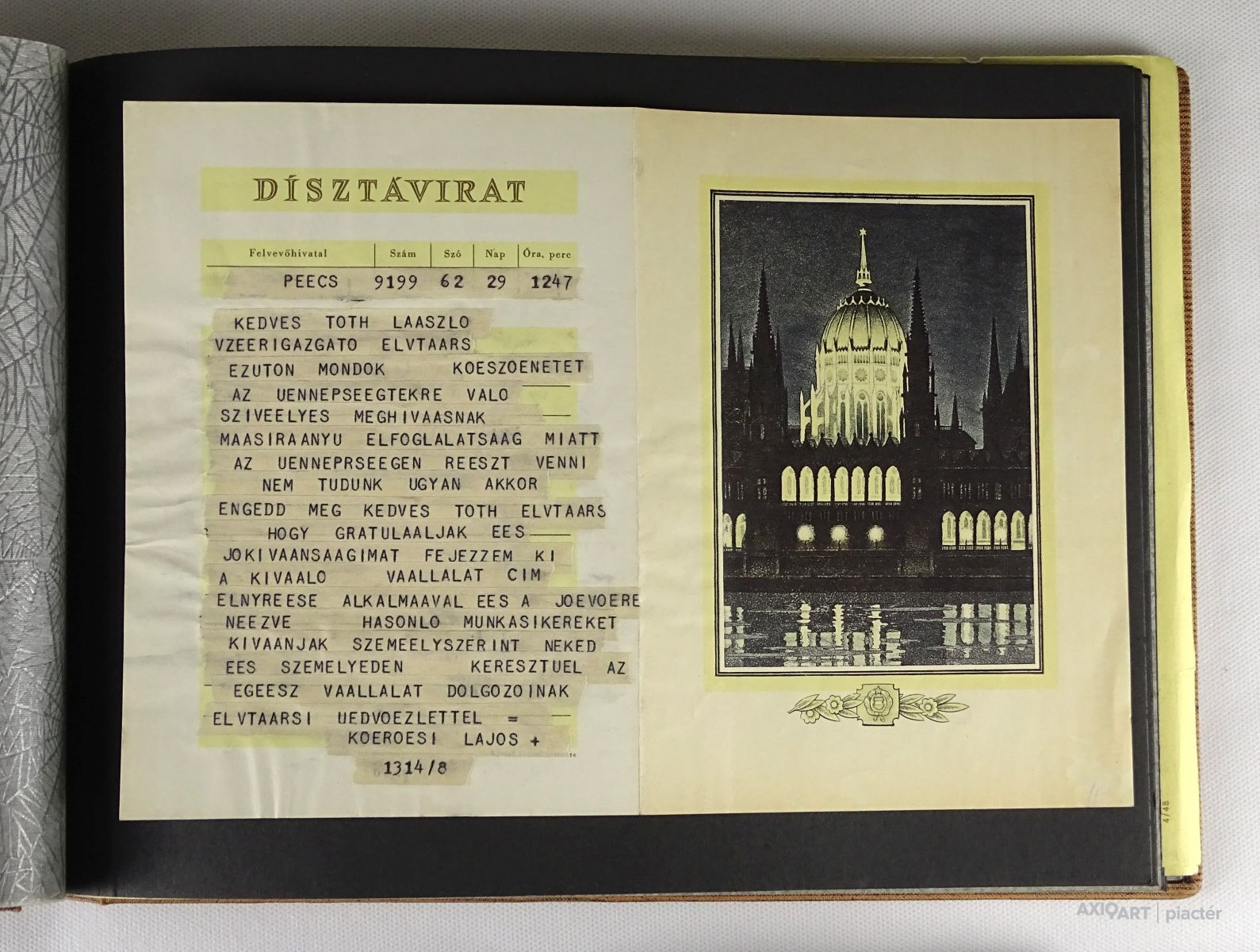 Összesen 15 darab fotó, 11 gratuláló távirat, 1 meghívó, 3 oklevél, 2 darab újságcikk, 3 darab levél található benne.