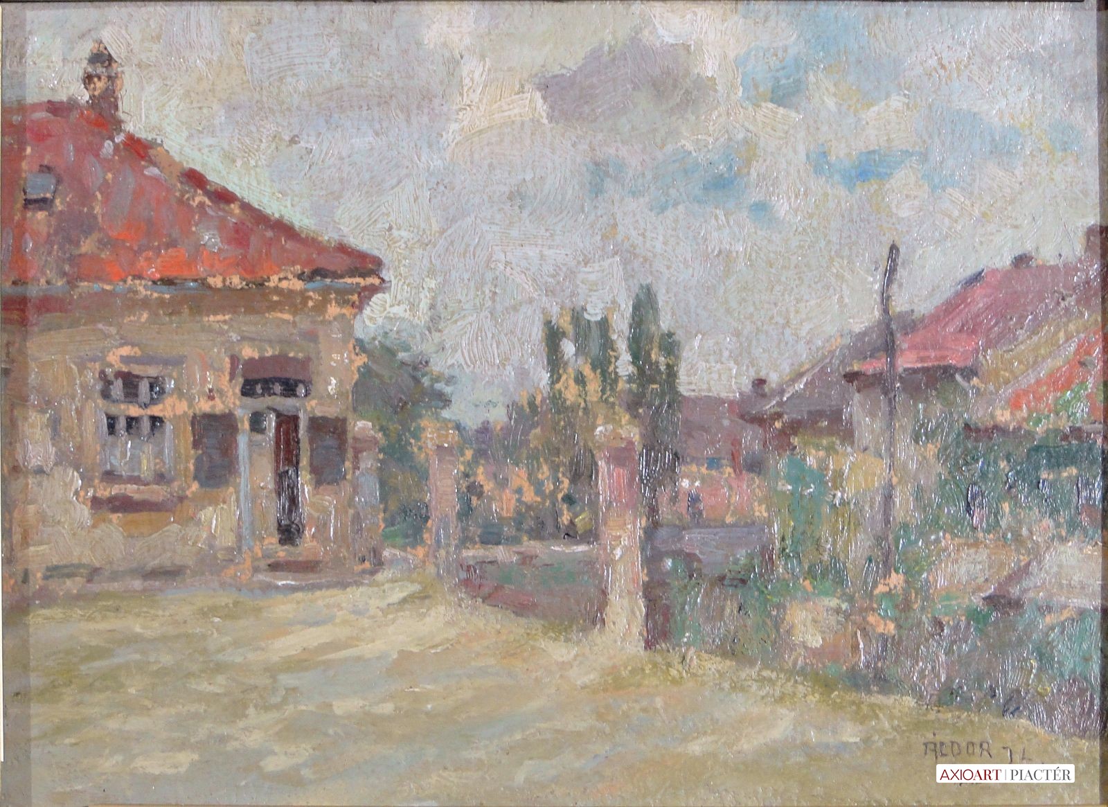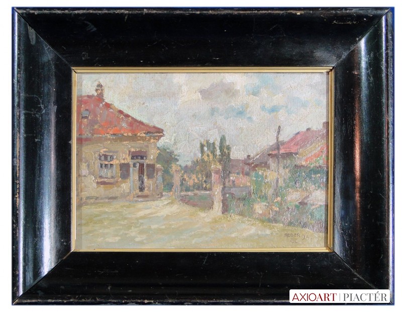 [1K101/079] Olaj karton festmény hibátlan aranyozott Blondel keretben. Azonnal falra akasztható állapotban van. Datált jelzés jobbra lent: HORVÁTH BÉLA 1933 Magasság: 60 cm Szélesség: 76 cm Súly: 2.83 kg Horváth Béla festő, szobrász Pinkafő, 1888-03-25  Elhalálozott: Pompano Beach [Florida, USA], 1973. január 6. 1904-07: Magyar Iparművészeti Főiskola, mesterei: Lórántfi Antal és Mátray Béla. Ösztöndíjjal Münchenben Balthasar Schmidtnél majd Párizsban Théophile Sternnél tanult. Tanulmányutat tett Olaszországba, Belgiumba és Hollandiába is. 1945-től Ausztriában élt, majd 1949-ben az Egyesült Államokban telepedett le. A Daytoni Egyetemen 1950-52 között professzor. Elnyerte az alábbi megtisztelő tagságokat: Fellowship International Institute of Arts and Letters, Svájc, 1961; Member of World Federation of Hungarian Artists; Centro Studi e Scambi Internazionali, Róma, 1969; Arany Érem, Accademia Internazionale Tommaso Campanella di Lettere-Arti-Scienze, Roma, 1972; Accademia Internazionali Leonardo da Vinci di Scienze-Lettere-Arti, Róma, 1974. Nyugdíjba vonulása után festészeti, szobrászati, valamint iparművészeti alkotómunkássága mellett tanfolyamokat vezetett. Eredetileg szobrásznak készült, de alkotómunkásságának súlypontja végül a tájképfestészetre került. A hegyvidékfestés specialistája, emellett számos városi látképet is készített. Amerikában festett egyházi megrendelésre is, valamint formázott a columbusi City Hall részére Kossuth Lajost ábrázoló bronz domborművet. Hosszú élete során számos plakett, szobor és emléktábla került ki keze alól. Művészete természetelvű. Derűs tájképeivel, légies délvidéki városképeivel gyakran találkozhatunk budapesti aukciókon. A Daytoni Egyetem művésznövendékeinek ~ról elnevezett zárókiállításán – Annual Horváth Memorial Student Art Show – a zsűri által kiválasztott legjobb végzős művészeti hallgatónak évről évre odaítélik az özvegye által alapított ~-díjat. Irodalom  Lege Artis Medicinae, 1992/2. Egyéni kiállítások Egyéni kiállítások 1948 • Badgastein und Umgebung in 80 Bildern, Kursaal, Badgastein (A) 1951 • South Gallery, Miami Beach Art Center, Miami, Florida 1953 • Loretto Guild, Dayton, Ohio 1966 • The Beauty of America, University of Dayton, Dayton, Ohio • Trailsend Club, Dayton, Ohio 1976 • Dayton’s Memorial Hall, Dayton, Ohio 1978 • Springfield Art Association, Springfield, Ohio. Művek közgyűjteményekben Művek közgyűjteményekben   Forrás: artportal.hu