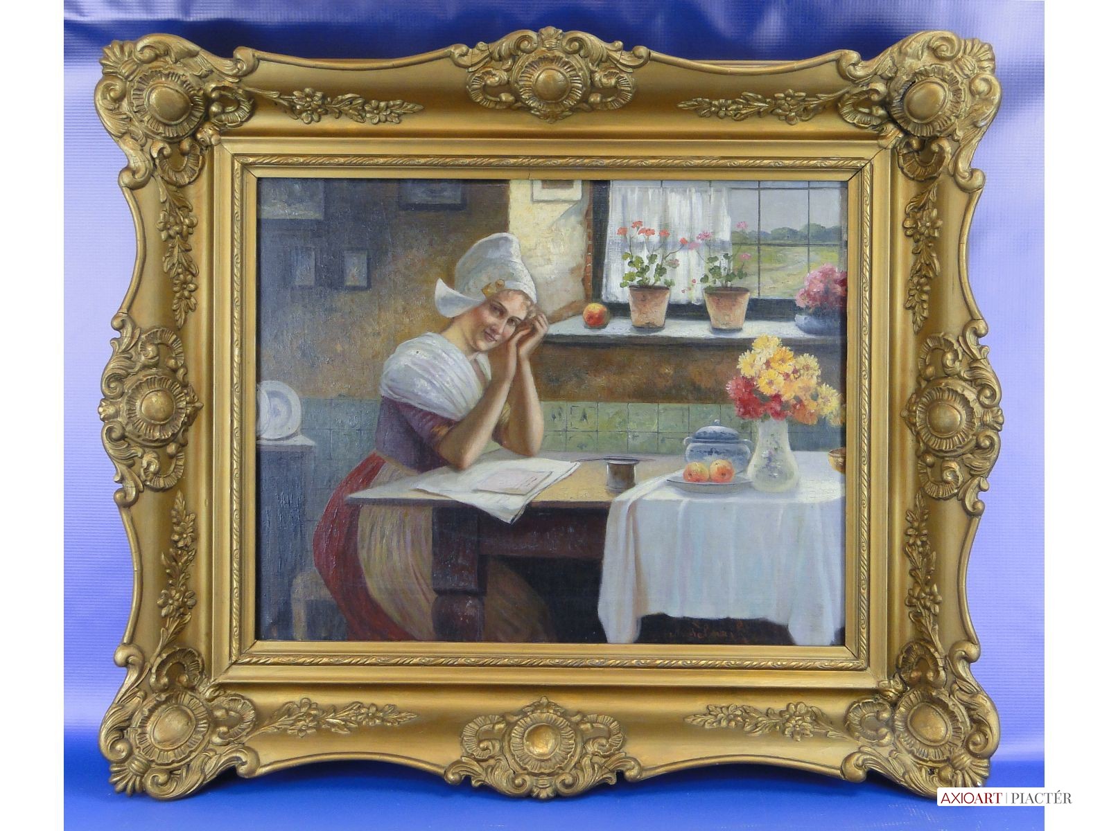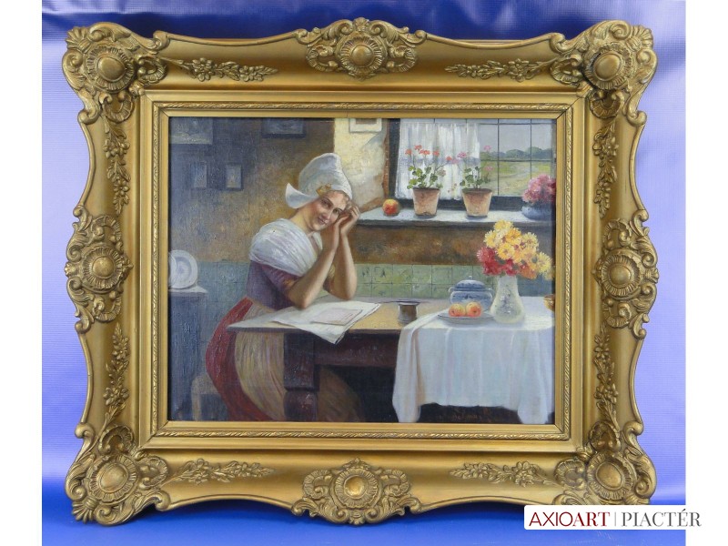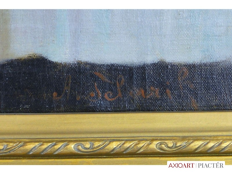 [FK0430/X187] A kép mérete: 60 x 80 cm keret nélkül. Készült: Olaj, Vászon A kép Illencz Lipót (Újarad, 1882, Arad, 1950) alkotása. Jelezve Balra lent "Illencz" A festmény jó állapotban van. Keret: Ép Magyar festők és grafikusok életrajzi lexikona I-II. Festő és grafikus. Arad város ösztöndíjával Münchenben Hollósy Simonnál kezdte tanulmányait, majd Azbe és Heidner festőiskoláját látogatta. Végül Aradon telepedett le, ahol mint arcképfestő és illusztrátor tevékenykedett. Impresszionista modorban alkotott. 1902-ben állított ki először Budapesten a Nemzeti Szalonban. (Éber) Magyar festők és grafikusok életrajzi lexikona I-II. Műgyűjtők és kereskedők kézikönyve Festő és grafikus. Arad város ösztöndíjával Münchenben Hollósy Simonnál kezdte tanulmányait, majd Azbe és Heidner festőiskoláját látogatta. Végül Aradon telepedett le, ahol mint arcképfestő és illusztrátor tevékenykedett. Impresszionista modorban alkotott. 1902-ben állított ki először Budapesten a Nemzeti Szalonban. (Éber) Magyar festők és grafikusok adattára Arad város ösztöndíjával Münchenben Hollósy Simonnál kezdte tanulmnyait, majd Heidner festőiskoláját látogatta. 1902-ben Budapesten a Nemzeti Szalonban állított ki először. Hazatérve Aradon telepedett le, ahol mint arcképfestő és illusztrátor működött. - MTA Művészeti lexikon I-II. Arad város ösztöndíjával Münchenben Hollósy Simonnál kezdte tanulmányait, azután Azbe, majd Heidner festőiskoláját látogatta. 1902. Budapesten a Nemzeti Szalónban állított ki először. Hazatérve Aradon telepedett meg, hol mint arcképfestő és illusztrátor működik.