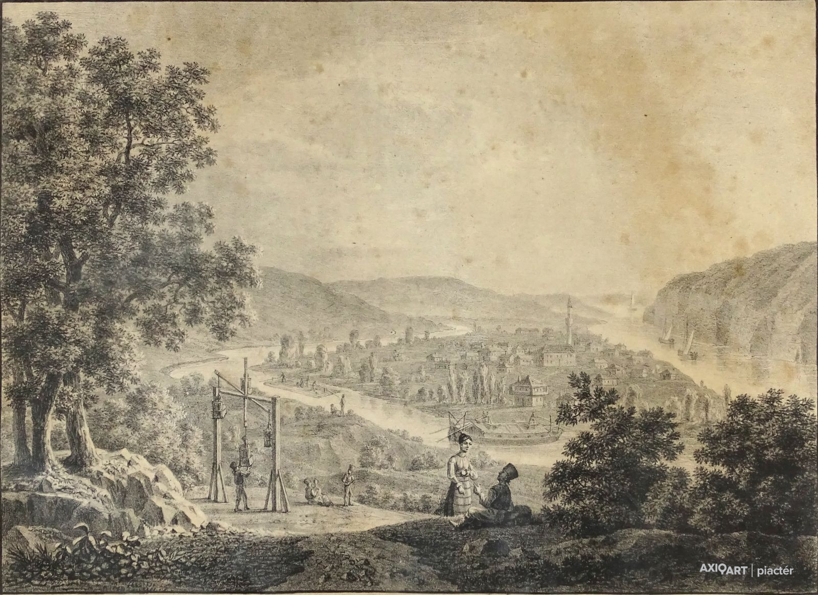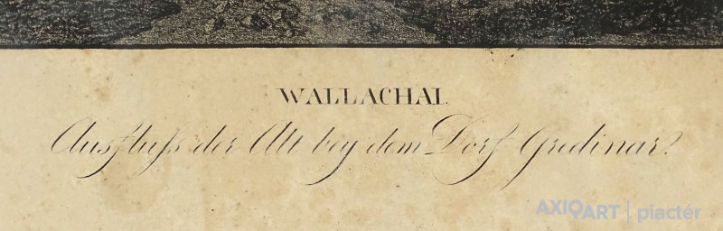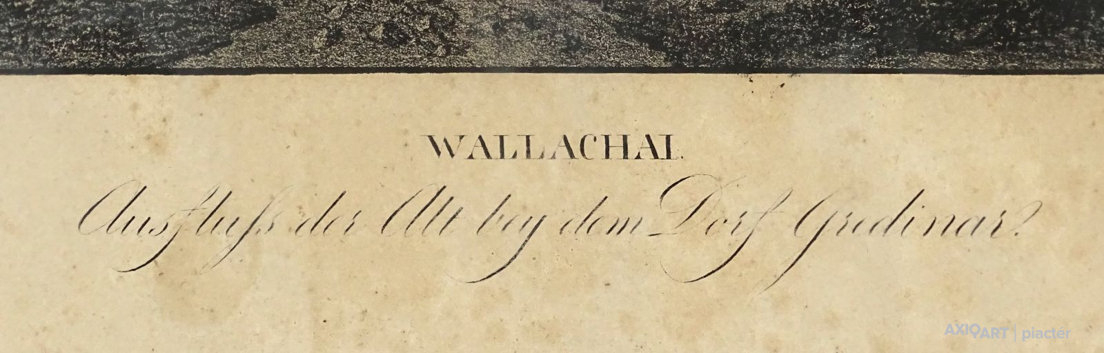 [1O128/056] Régi litográfia üveglap mögött, régi keretben. Akasztási lehetőséggel rendelkezik. Felirat: WALLACHAI AUSFLUSS DES ALT BEY DEM DORF GREDINAR Jelzés jobbra lent: LITHO. A. SAAR Rajzoló: Ludwig Erminy Kőnyomó: Alois von Saar (1779-1861) Szerkesztő: Adolf Friedrich Kunike (1777-1838) Magasság: 41 cm Szélesség: 50 cm Súly: 1.28 kg