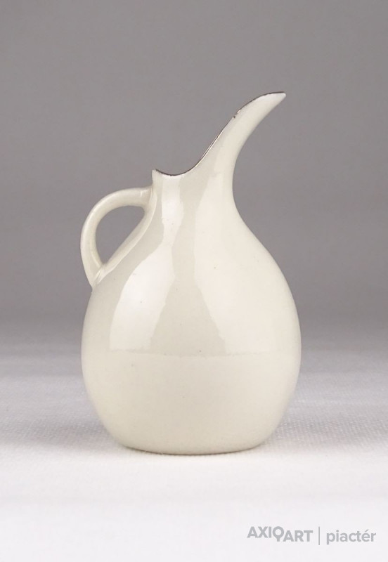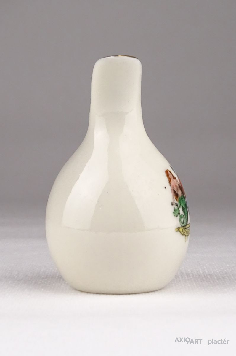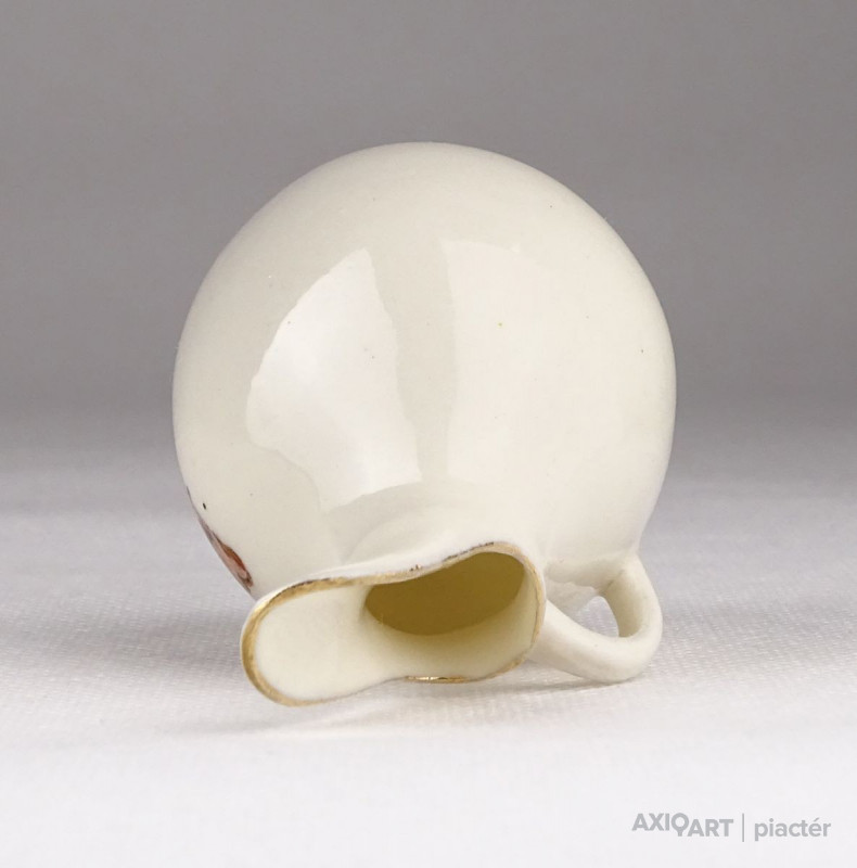 Régi, jelzett, kézzel festett angol porcelán kisméretű dísztárgy, porcelán kancsó, korsó.