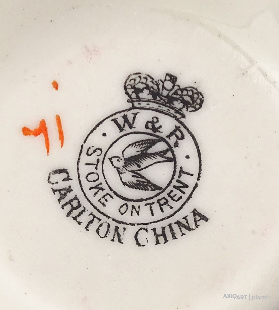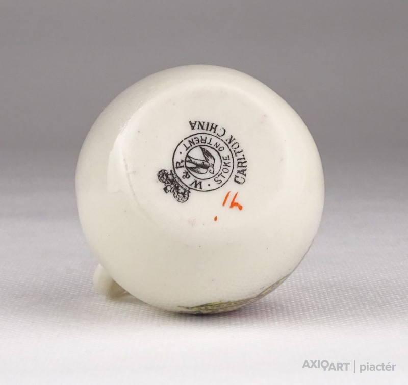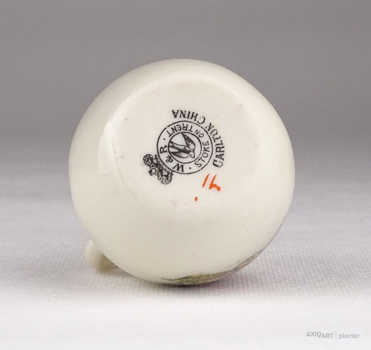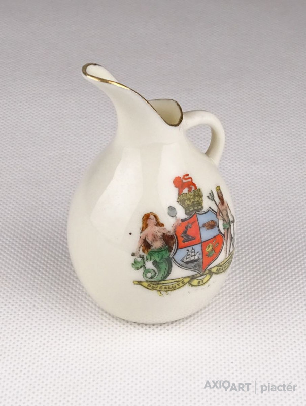 [0X651/X110] Régi, jelzett, kézzel festett angol porcelán kisméretű dísztárgy, porcelán kancsó, korsó. Oldalán koronás Lytham város címer és felirat: PRO SALUTE ET AMAENITATE Alján koronás jelzés: W&R STOKE ON TRENT CARLTON CHINA Magasság: 8.5 cm Szélesség: 3.3 cm Súly: 0.02 kg