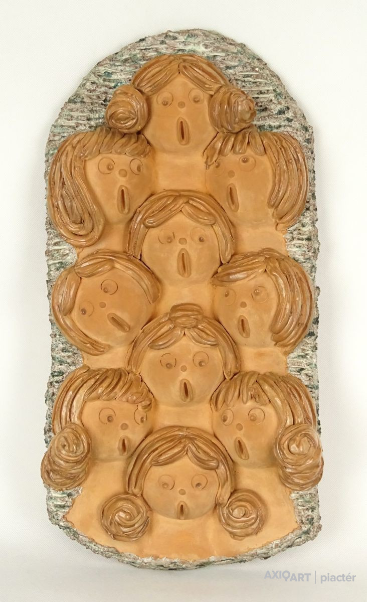 Hibátlan állapotú jelzett nagyméretű plasztikus kerámia flidísz, falikerámia. Tíz tagú ének kórus.