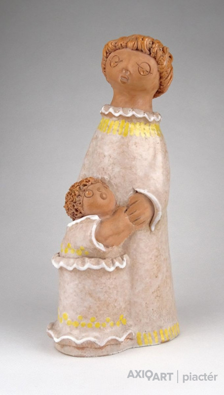 [1A028/BX-9] Nagyméretű, jelzett, hibátlan állapotú, kerámia figura. Anya gyermekével. Belül karcolt jelzés: ASZK (Antalfiné Szente Katalin) Magasság: 25 cm Szélesség: 12 cm Súly: 0.84 kg