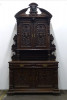 Antik sötétbarna színű, szép állapotú, nagy méretű, dúsan faragott ónémet garnitúra az 1800-as évek végéről.