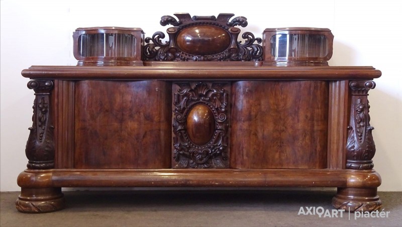 Gyönyörű, komplett, nagypolgári, hatalmas részletgazdag faragványokkal díszített tálaló garnitúra az 1920-30 as évekből.