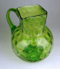 [0G113/X218] Hibátlan állapotú, hólyagos, lencsés zöld színű fújt üveg hutaüveg nagy méretű kancsó. Magasság: 20 cm Szélesség: 16 cm Súly: 0.828 kg