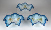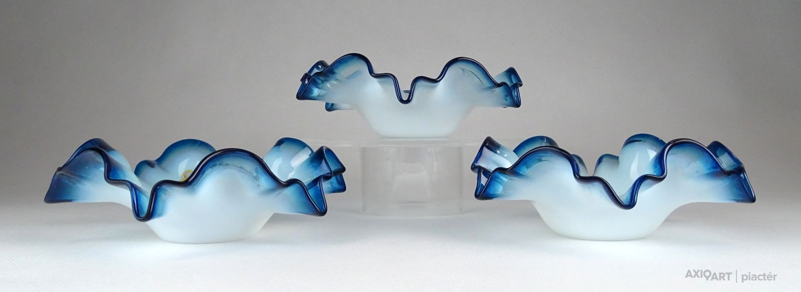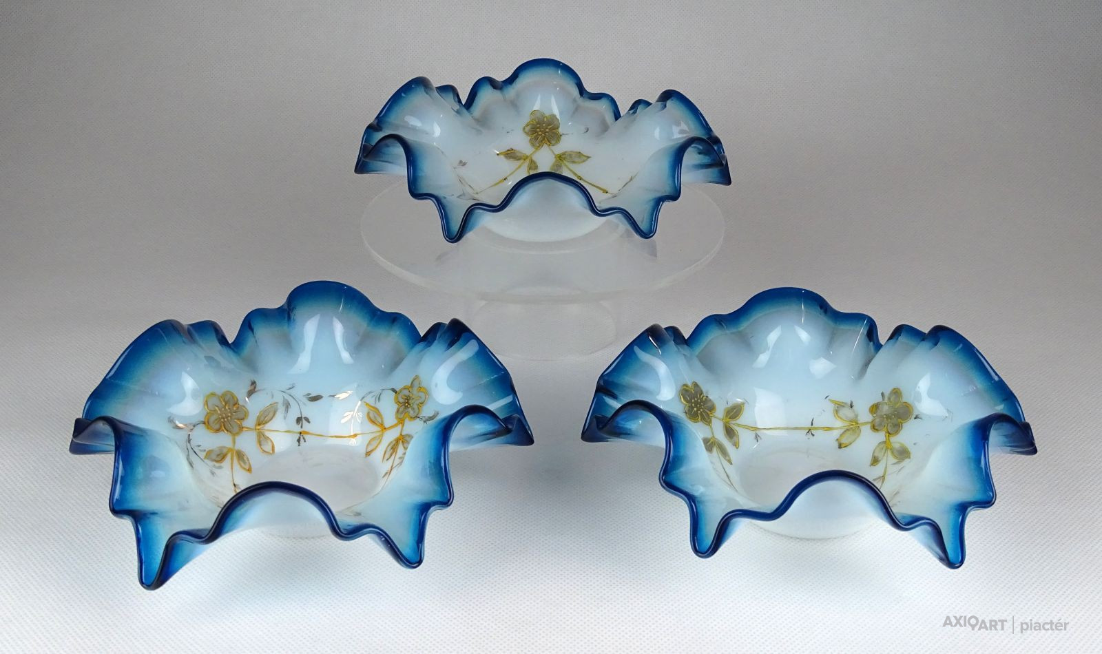 Antik 19. századi kék fújtüveg tálka készlet 3 darab