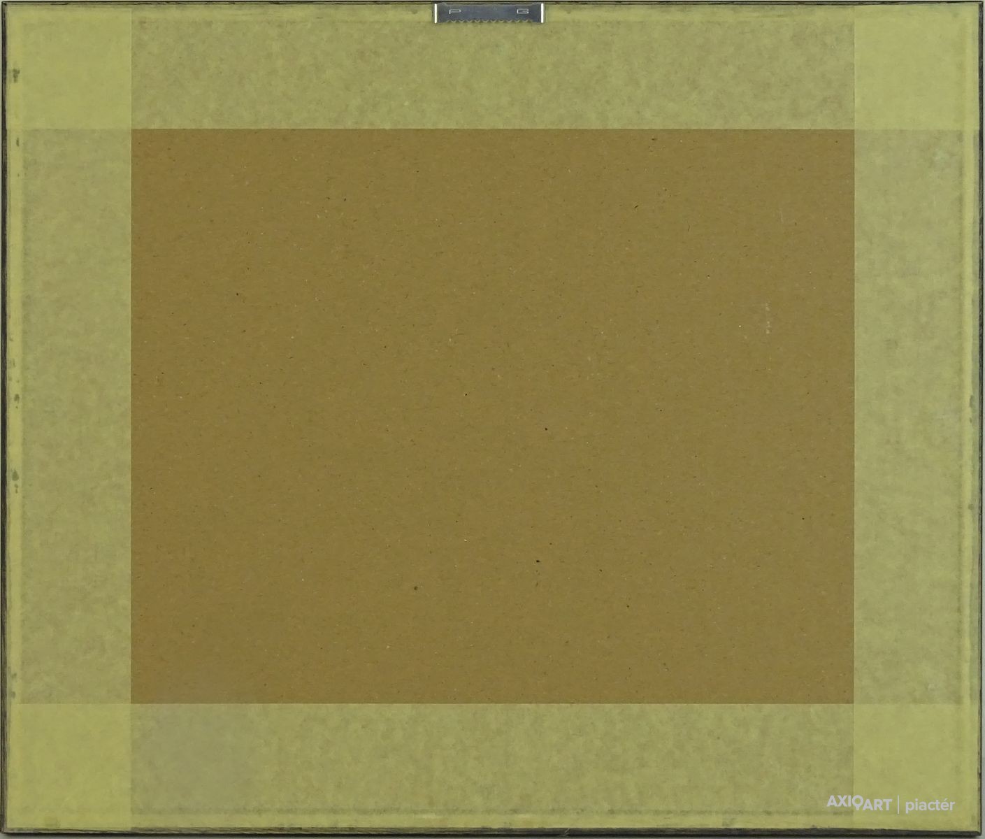 [1Y029/Z018] Olaj farost festmény, üveglap mögött, hibátlan képcsarnokos keretben. Hátoldalán Képcsarnok Vállalat papír címkéje: A művész neve: SCHÉNER MIHÁLY A kép címe: TÁJ Magasság: 66.5 cm Szélesség: 86 cm Súly: 6.54 kg Schéner Mihály festő, grafikus, szobrász, keramikus, bábtervező Medgyesegyháza, 1923-01-9 Elhalálozott: Budapest, 2009. május 11. Honlap: http://www.kormendigaleria.hu/kiadvany.html 1942-1947: Magyar Képzőművészeti Főiskola, tanára: Rudnay Gyula. 1978: Munkácsy-díj; 1984: érdemes művész; 1989: kiváló művész; 1995: Kossuth-díj. 1992-től a Magyar Művészeti Akadémia, 1993-tól a Széchenyi Irodalmi és Művészeti Akadémia tagja. 1956-ig tanított. 1982: Nagyatádi Faszobrász Alkotótelep, 1985: Nemzetközi Acélszobrász Alkotótelep, Dunaújváros. A stílusában felismerhető, mégis sokféle műtárgyat létrehozó ~ gazdag, állandóan alakuló életműve a folyton változó világban helyét kereső, az alkotói szabadságot megvalósító XX. századi képzőművész példázata lehetne. Magát expresszív-szürrealista alkotónak nevezi. Egyaránt dolgozik festékkel, textillel, fával, fémmel. Rajzol, szerkeszt, farag, épít, gyúr, varr és ragaszt, felhasználja a mézesbábok öntőformáit. Festő, rajzoló, textilszobor- és bábkészítő, fazekas, asztalos, esztergályos. Háromlépcsős folyamatban gondolkozik: rajzban tervez, majd fest, szobrot készít, “formába önt”, mindig a végső plasztikai megoldást keresi. Ami állandó és mégis játékosan változékony megjelenésű Schéner művészetében, az a gyermekkori emlékek által meghatározott népi mesterségek iránti tiszteletet kifejező motívumkincs, a tárgyi folklór formakészlete, amely már-már kézjegyként ismétlődik munkáin. Mitologikussá nőtt képzelete új lényeket teremt, pl: a Pigulát, amely disznótestű, emberfejű teremtmény. Schéner festményein a szürrealista motívumokat konstruktív szerkezetbe rendezi, a geometriát és az organikus természeti motívumokat egyaránt beépíti műveibe. A népi, népművészeti formakincsből merített lovas huszárok, betyárok, szegénylegények cifra szűr mentéje, piros csákója, fekete csizmája, az önálló életet élő zsinórdíszek és mézeskalács bábok, a kiskocsik a gyermekkori vásárok, búcsúk színes forgatagába vezet. A primér motívumokat aztán felváltják a vastagon felhordott felületbe karcolt jelek, vonalhálózatok, amelyek a játszó gyermek homokba rajzolt ábráit, a pásztorember fába vésett üzeneteit, az ősember barlang falába rótt mágikus jeleneteit idézik meg. A művész pillanatnyi érdeklődésének megfelelően a színek búvópatakként tűnnek el és jelennek meg ismét. A 60-as években leginkább a formákkal való játék érdekelte, a festmények felülete egyre gazdagodott: a táblaképek felületén applikációk jelentek meg, vagy lemállasztott rétegek hagyták maguk után hiányukat, motívumok nélküli ősformák, archetipikus képzetek bukkantak fel művészetében. A véletlenszerűnek látszó rétegekkel való játék azonban tudatos komponálás eredménye, amely később nyilvánvaló ritmusnak és formai szerkesztettségnek adja át a helyét, mint a Törvénytáblák c. sorozaton. A különböző művészi kifejezési formák egymásra termékenyítő hatással vannak, át- meg áthatják egymást. Textilszobrai, amelyekkel új műfajt teremtett, ugyanazzal az automatikus, expresszív-szürrealista módszerrel készülnek, mint festményei. A hagyományosan a népművészetben alkalmazott anyag, a filc lehetőséget ad a népi formakincs felelevenítésére, amely azonban a művész különös szürrealista átiratában jelenik meg. A szívekkel kivarrt, zsinórdíszes Posztókotlós c. művén mézesbábok lógnak, hátán huszárok lovagolnak. Egész sor textilből készült kéz-plasztikát alkot, amelyeket az ujjakra rávarrt díszekkel öltöztet, személyesít meg. A színes-különös világból aztán ~ újra puritán képi és formai rendbe juttatja el a nézőt, majd nemsokára tépett, gyűrt, vágott, csorgatott, repedezni hagyott szenvedélyesen vonagló képi felületeket hagy hátra. Schéner készített apró gyermekjátékokat, térstruktúra-tereket, mászókákat is. A magyar népi formák mellett szürreális játékaiban gyakran alkalmaz görög mitológiai alakokat, “elkentaurosodott” lovakat, Gorgó-fejeket, sellőket, hárpiákat, Pán-ábrázolásokat. Schéner nemcsak saját művészetéről publikál, hanem művésztársairól is számos írása jelenik meg, elsősorban az Új Auróra c. folyóiratban, amelynek egy ideig főmunkatársa volt. Irodalom kiállítása, Magyar Építőművészet, 1962/4. Húsz év után, Művészet, 1965/4. BOZÓKY M.: ~, Tiszatáj, 1968/5. PERNECZKY G.: Nincs uborkaszezon, Élet és Irodalom, 1969. augusztus 8. BARÁNSZKY-JÓB L.: ~, Művészet, 1969/9. LÁSZLÓ GY.: ~ kaposvári kiállítása, Jelenkor, 1969/4. MAJOR M.: Pásztorok, betyárok, huszárok - kezek, Tükör, 1970. szeptember 15. FRANK J.: Bemutatjuk ~t, Élet és Irodalom, 1972. május 6. ról kiállítása ürügyén, Képzőművészeti Almanach, Budapest, 1972 Sötétkék kokasok, Élet és Irodalom, 1973. szeptember 9. MAJOR M.: ~ játékai, Élet és Irodalom, 1974. július 27. BARTA J.: Egy különös művész, Alföld, 1974/6. VADAS J.: Szárnykészítők, Élet és Irodalom, 1975. október 4. JUHÁSZ F.: A halál ellen játszani, Élet és Irodalom, 1975. május 17. PAP G.: Kincsek és műkincsek, Művészet, 1975/6. P. SZŰCS J.: Az utak kettéválnak, Művészet, 1978/3. Békési művészet, Művészet, 1978/7. SZAMOSI F.: ~ [kismonográfia], Budapest, 1978 VADAS J.: Játék a játékkal, Élet és Irodalom, 1979. augusztus 18. NÉMETH L.: ~ műveiről, Művészet, 1979/4. MIKLÓS P.: Mit akar ez a múzeum?, Művésze