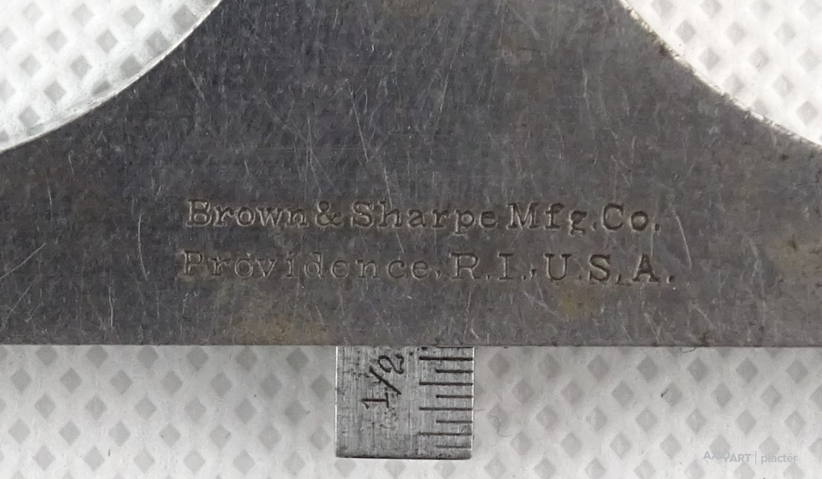 [0U102/X163] Eredeti párnázott fa tokjában található, szép állapotú amerikai precíziós mérőműszer. Feliratok: BROWN & SHARPE MFG. CO. PROVIDENCE R.I. U.S.A. PAT. JUNE.21.1904 TEMPERED 6 B&S MFG.CO. PROV. R.I. U.S.A. Szélesség: 7.5 cm Hosszúság: 15 cm Súly: 0.22 kg