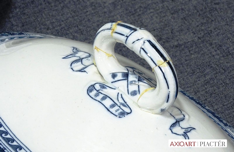 - 1 darab nagyméretű leveses tál (24 x 22 x 36 cm) Füle sérült.