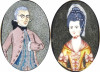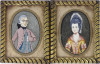[1Z918/X304] Antik, miniatűr barokk, főúri porté festmény pár, képpár, üveglap mögött aranyozott keretben. Magasság: 10.5 cm Szélesség: 8 cm Súly: 0.105 kg