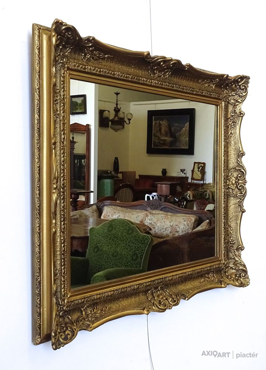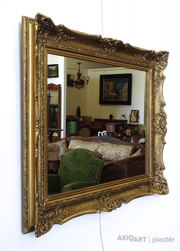 [1K324/UZ-K] Antik, hibátlan állapotú nagy méretű aranyozott Blondel keretes falitükör. Azonnal enteriőrbe helyezhető állapotban van. Szélesség: 82.5 cm Hosszúság: 103 cm   Mérete kerettel együtt 82 x 100 cm, fészekmérete 58,5 x 78,5 cm.