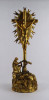 [1T379/Z029] Gyönyörű aranyozott antik egyházi, vallási kellék. Talapzaton álló feszület, rajta a keresztre feszített Jézus. Lábánál anyja, Mária, egy serleg, koponya és kígyó látható. Magasság: 51.5 cm Szélesség: 16.5 cm Súly: 1.305 kg