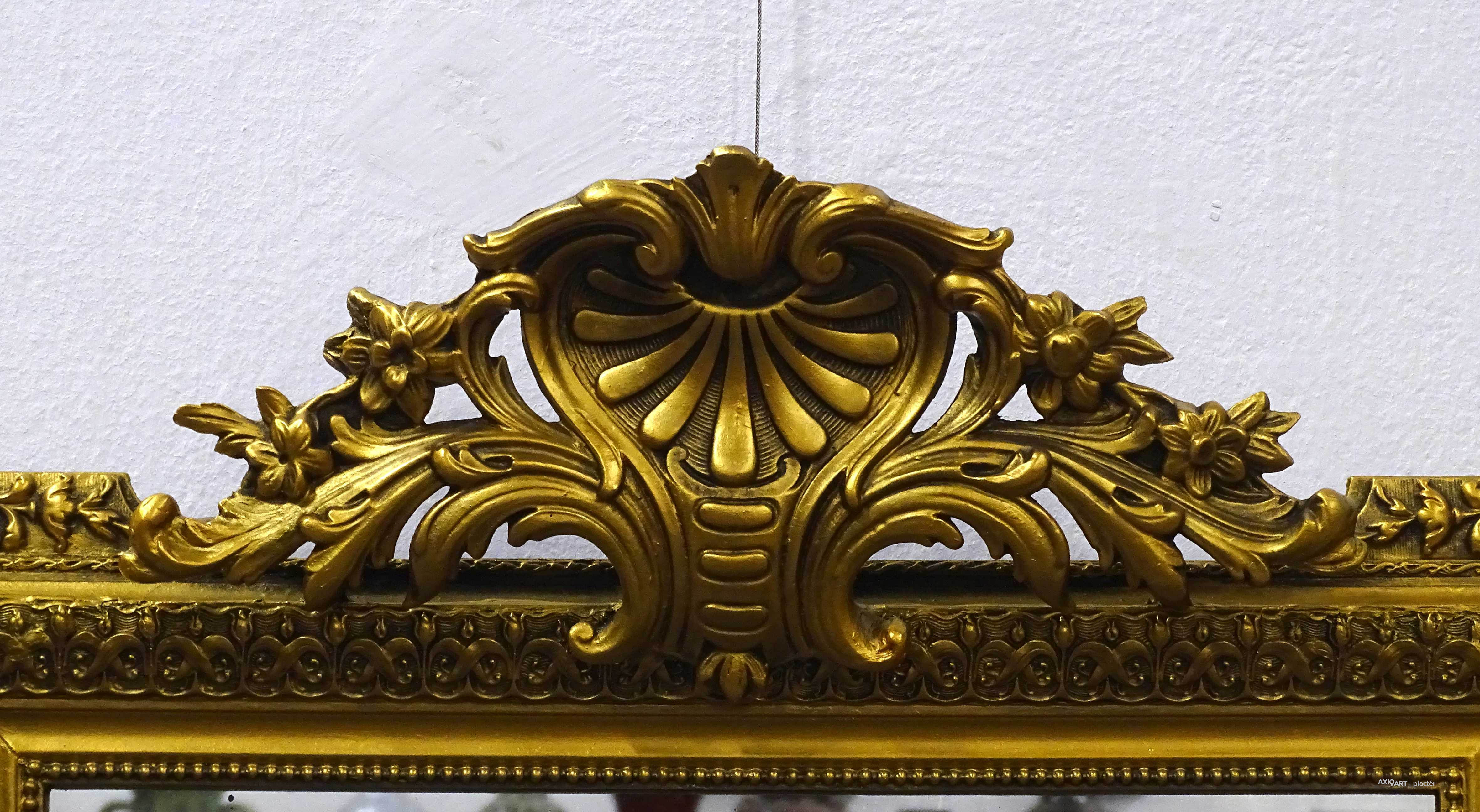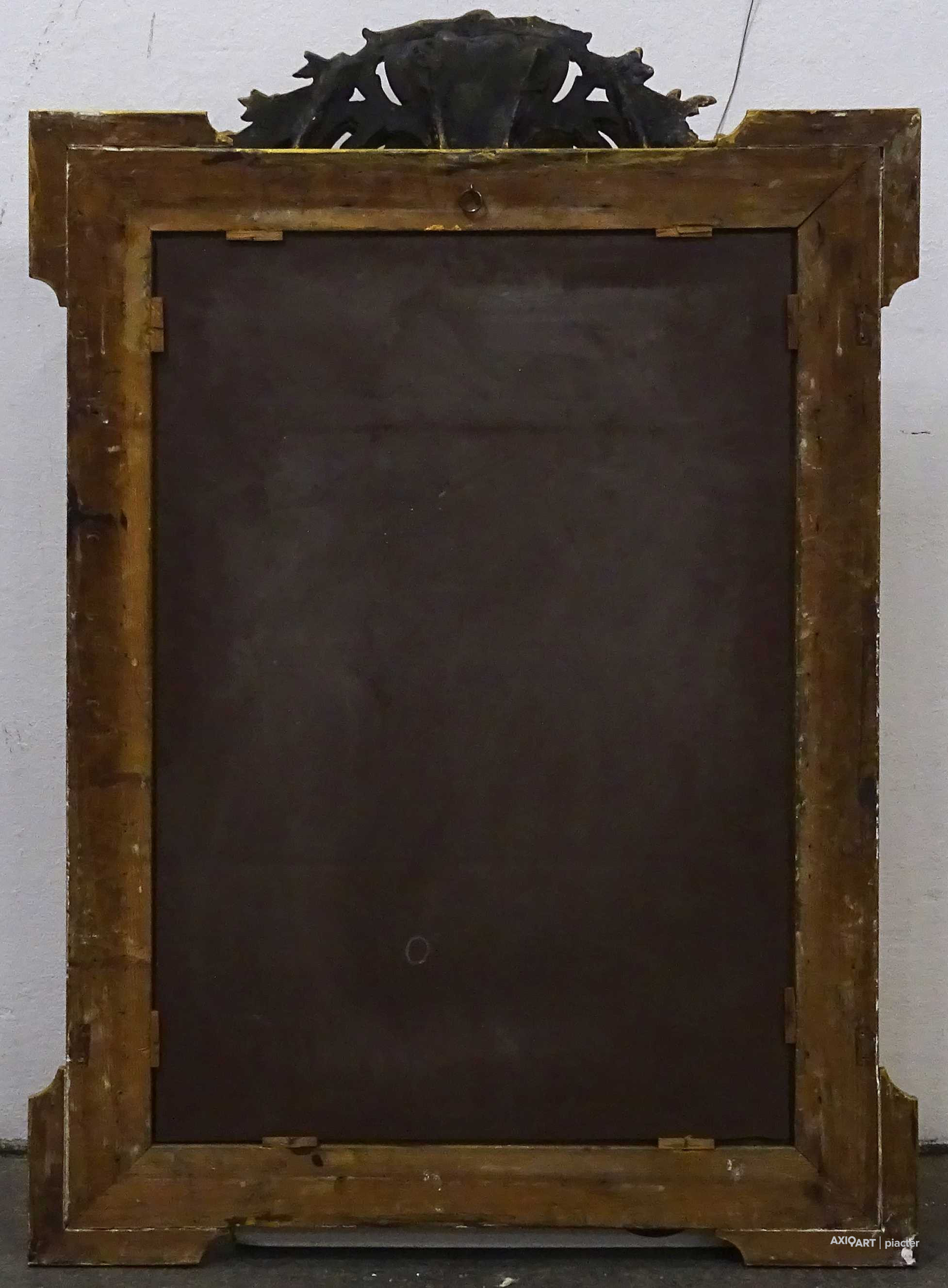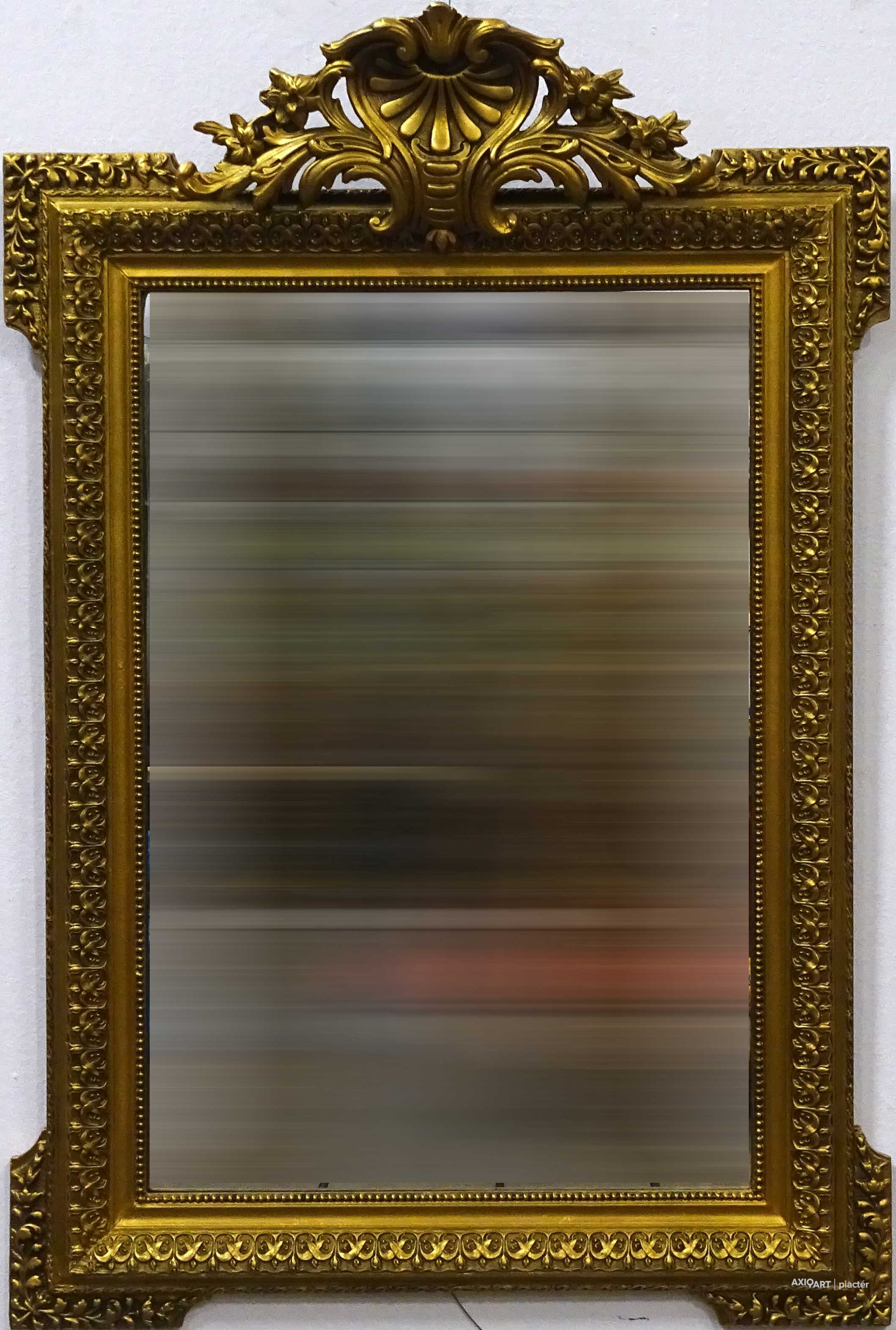 [1V025/UZ-K] Antik, aranyozott, faragott, fakeretes, díszkoronás barokk tükör falra akasztási lehetőséggel. Magasság: 108 cm Szélesség: 81 cm