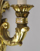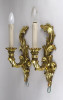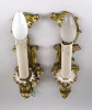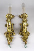 [1J333/105] Szép állapotú, falra akasztható, aranyozott florentin falikar párban. A karok papírmasé gyertyákban végződnek, kis méretű E14-es izzó való Rendkívül díszes, faragott hársfa florentin fali világítás. Magasság: 37 cm Szélesség: 9 cm Súly: 0.4 kg