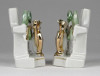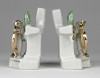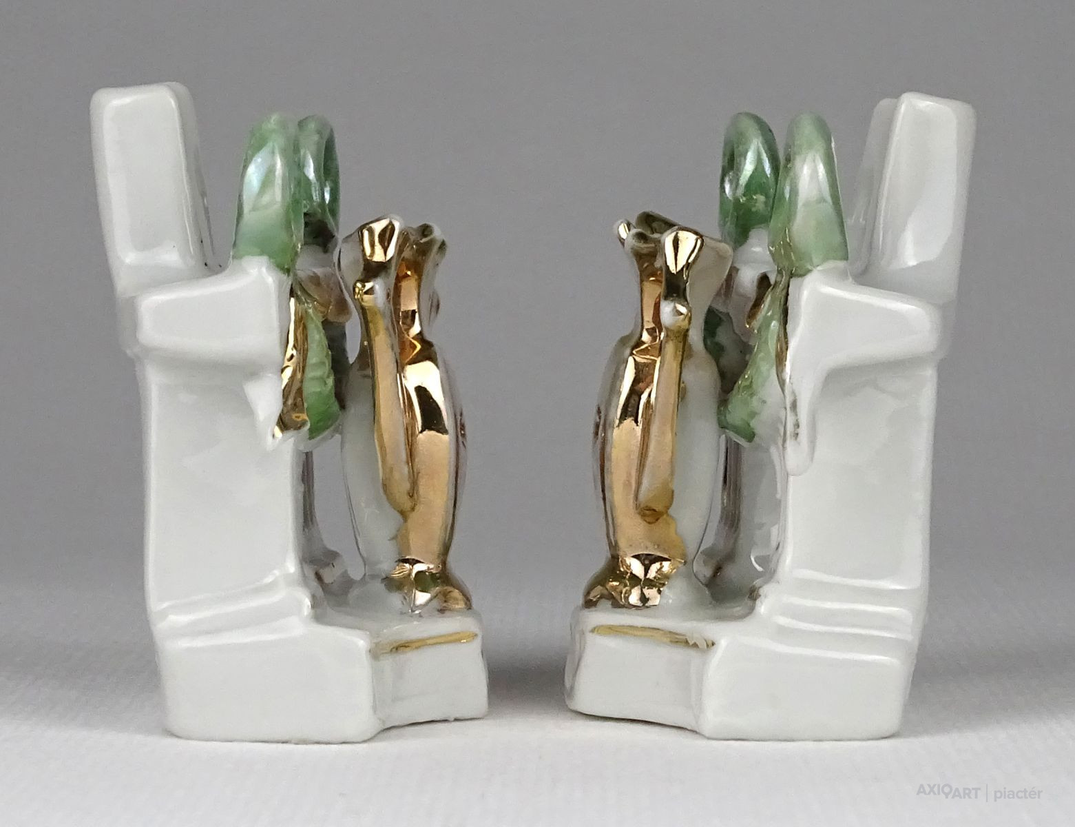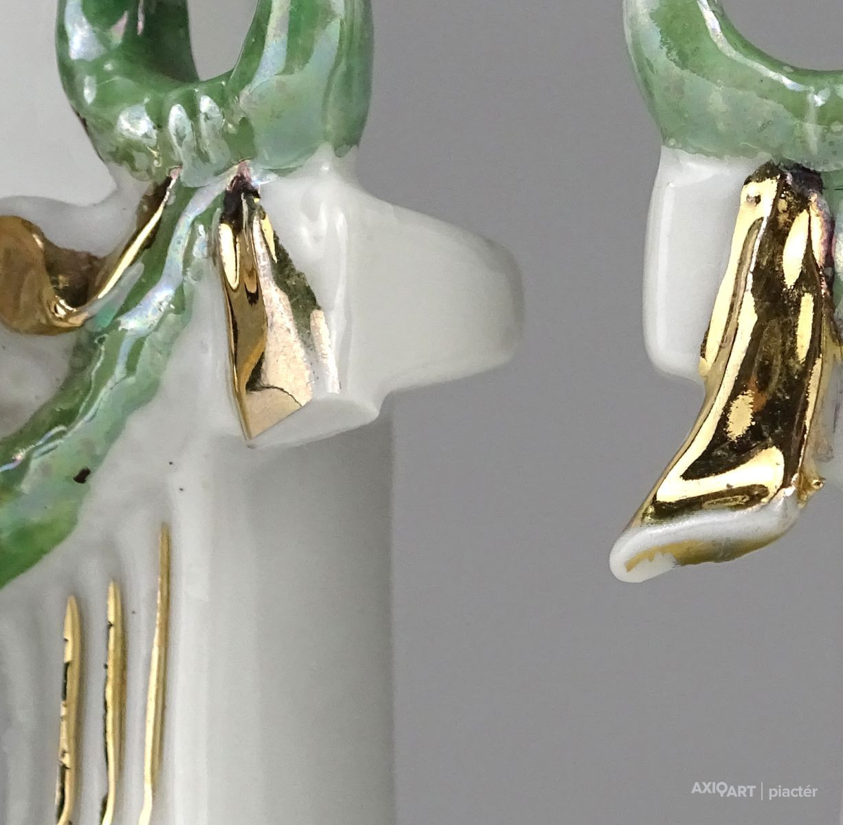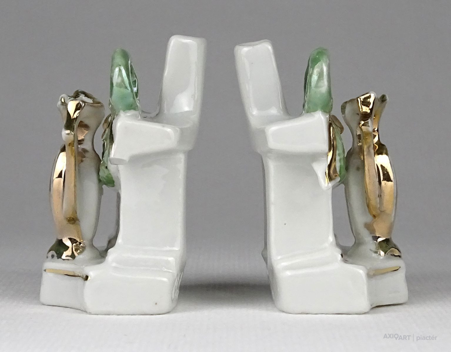 Antik, jelzett kis méretű, vastagon aranyozott porcelán dísztárgy pár. Kandalló alakú ibolyaváza.