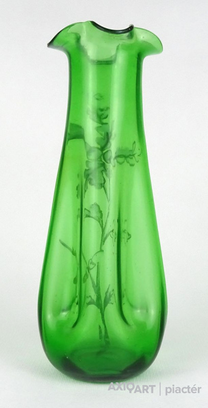 Antik aranyozott zöld szecessziós fújt üveg váza 26 cm