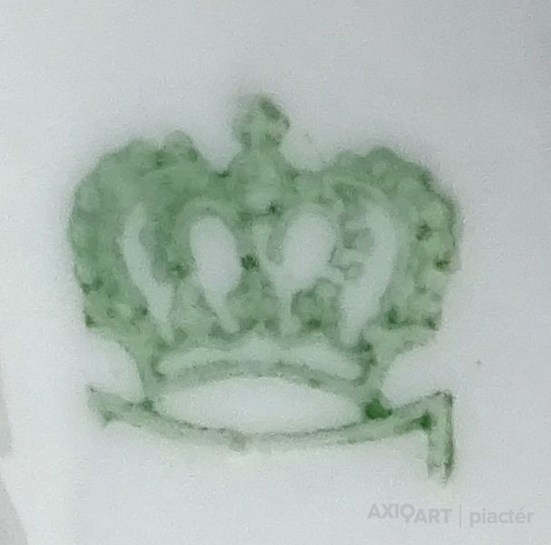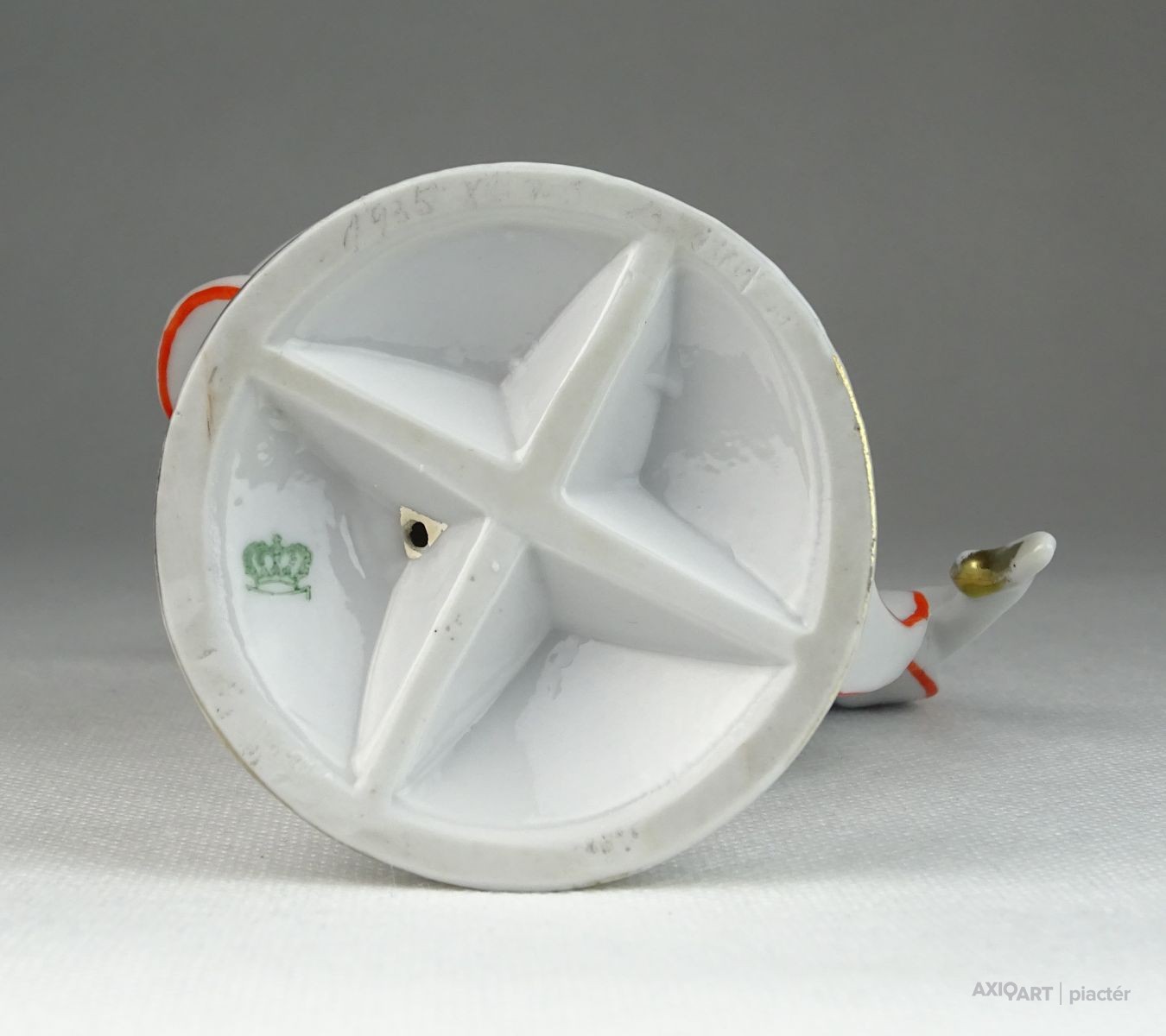 [0R424/X177] Hibátlan állapotú, jelzett, talapzaton álló porcelán szobor. Alján zöld koronás jelzés, lásd fotó. Ceruzás jelzéssel 1935-re datált! A talapzat hátoldalán: Sp.635 Magasság: 19 cm Szélesség: 11.5 cm Súly: 0.27 kg