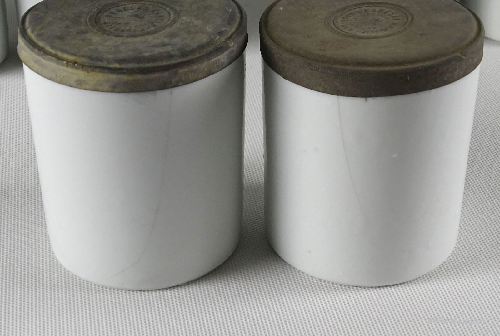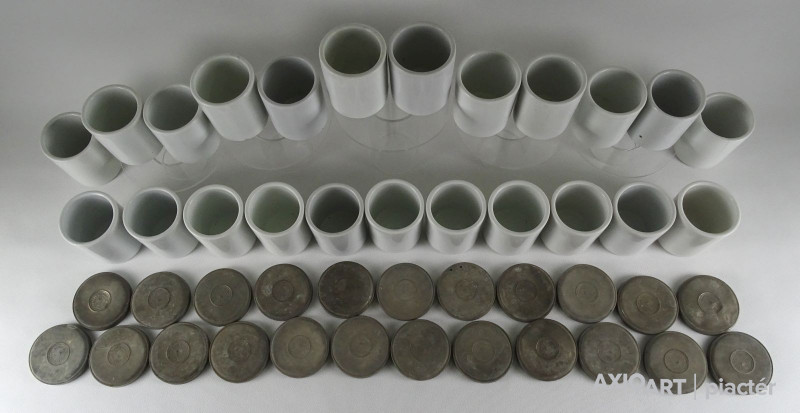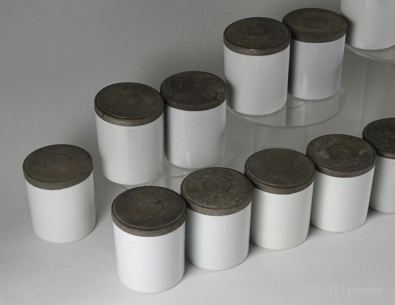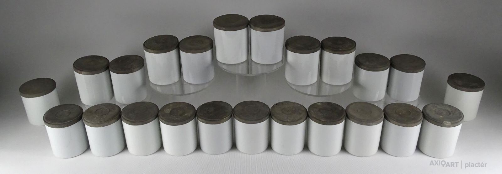 Régi szép állapotú, porcelán gyógyszertári tároló edény, patika tégely készlet, 23 darab.