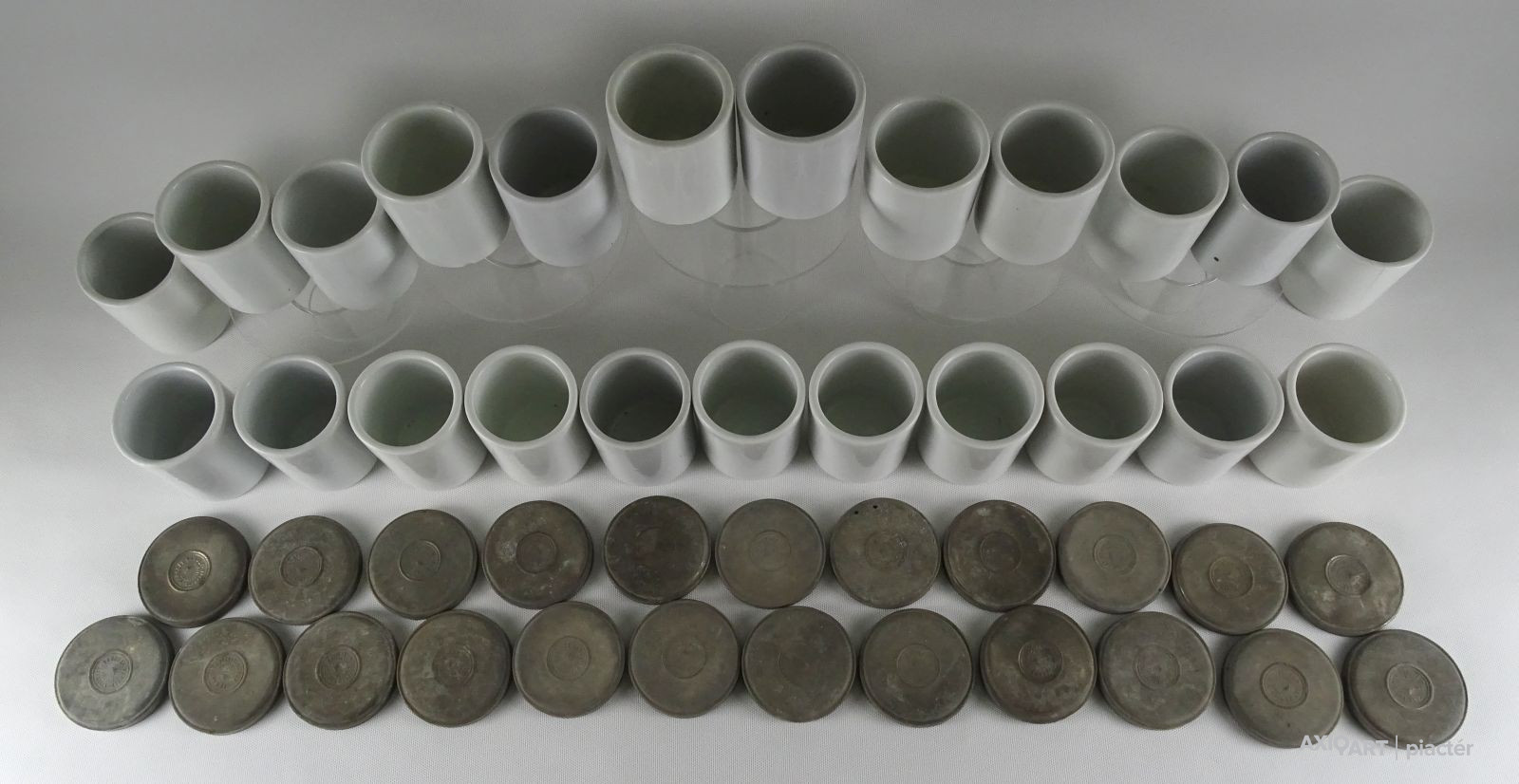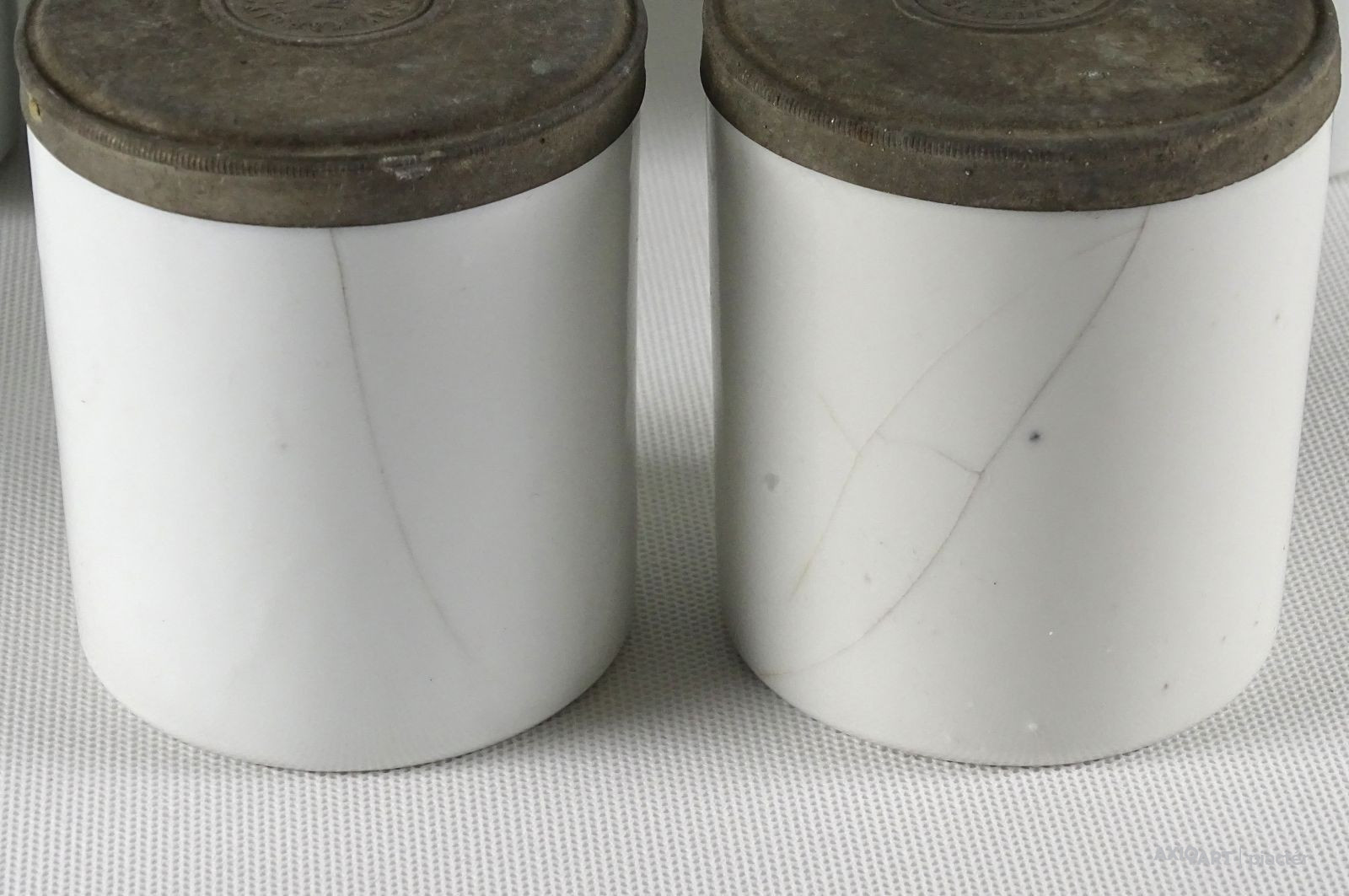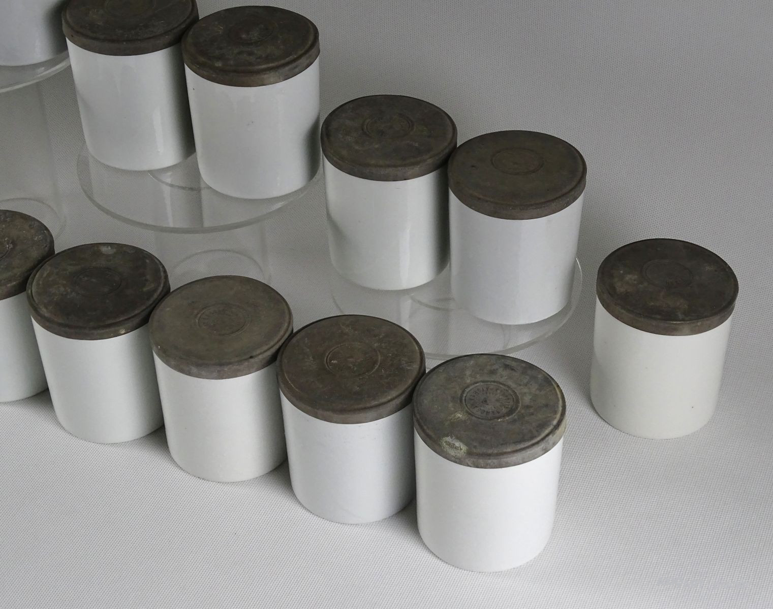 Régi szép állapotú, porcelán gyógyszertári tároló edény, patika tégely készlet, 23 darab.