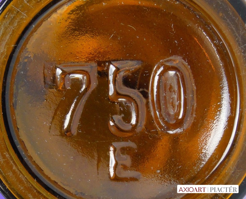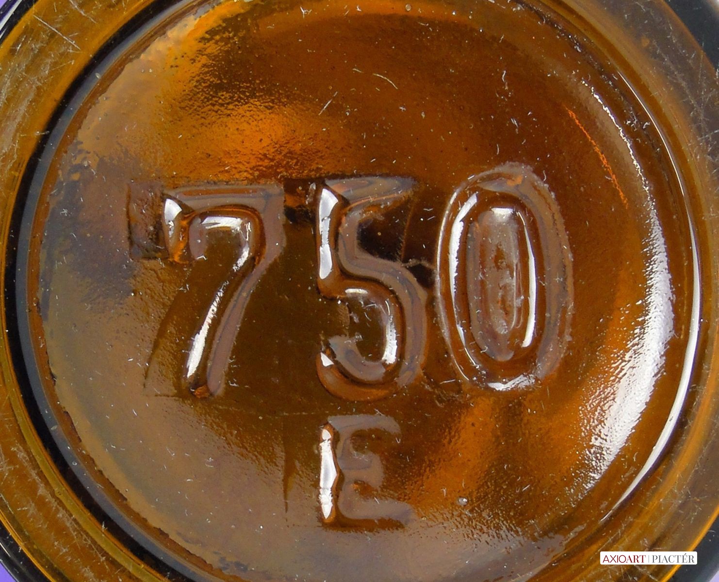 [0F436/X119] Régi, hibátlan állapotú, nagyméretű gyógyszertári üveg, barna színű patikaüveg. Alján domború jelzés: 750 Magasság: 21 cm Szélesség: 8.8 cm Súly: 0.497 kg   Magassága 19 cm, átmérője 7 cm. Súlya 437 g.