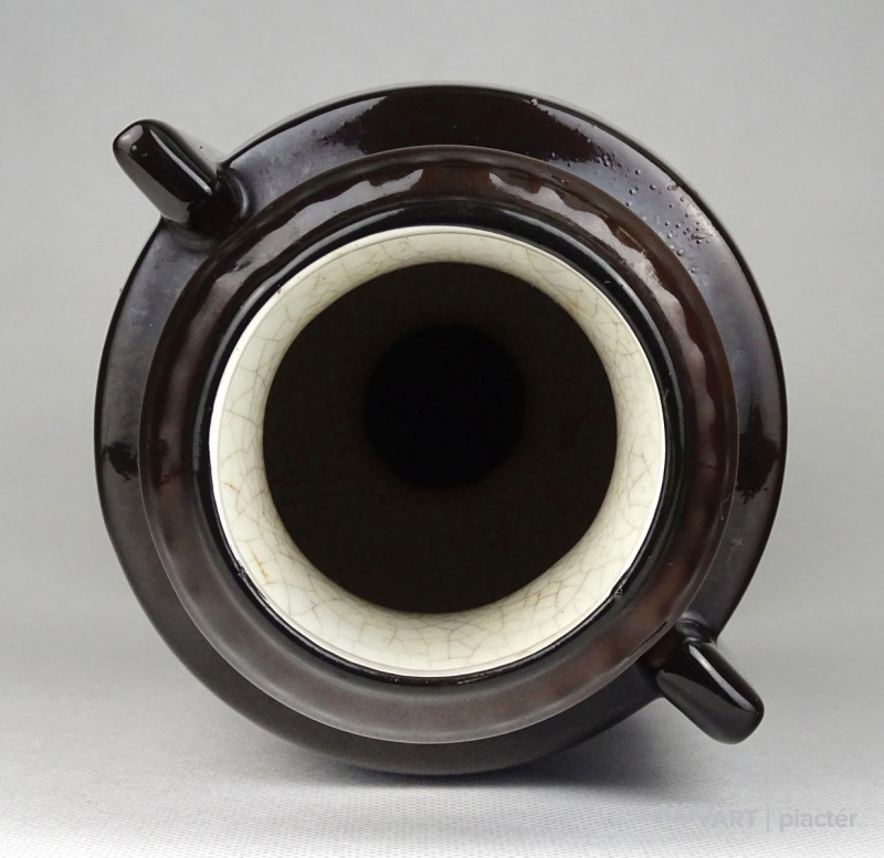 Antik barna színű Szakmáry Hollóházi fajansz váza díszváza 25 cm