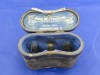 Nagyon régi kisméretű réz színházi távcső, látcső, kukker eredeti királykék selyemmel bélelt bőr tokjában.