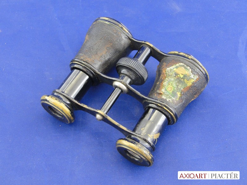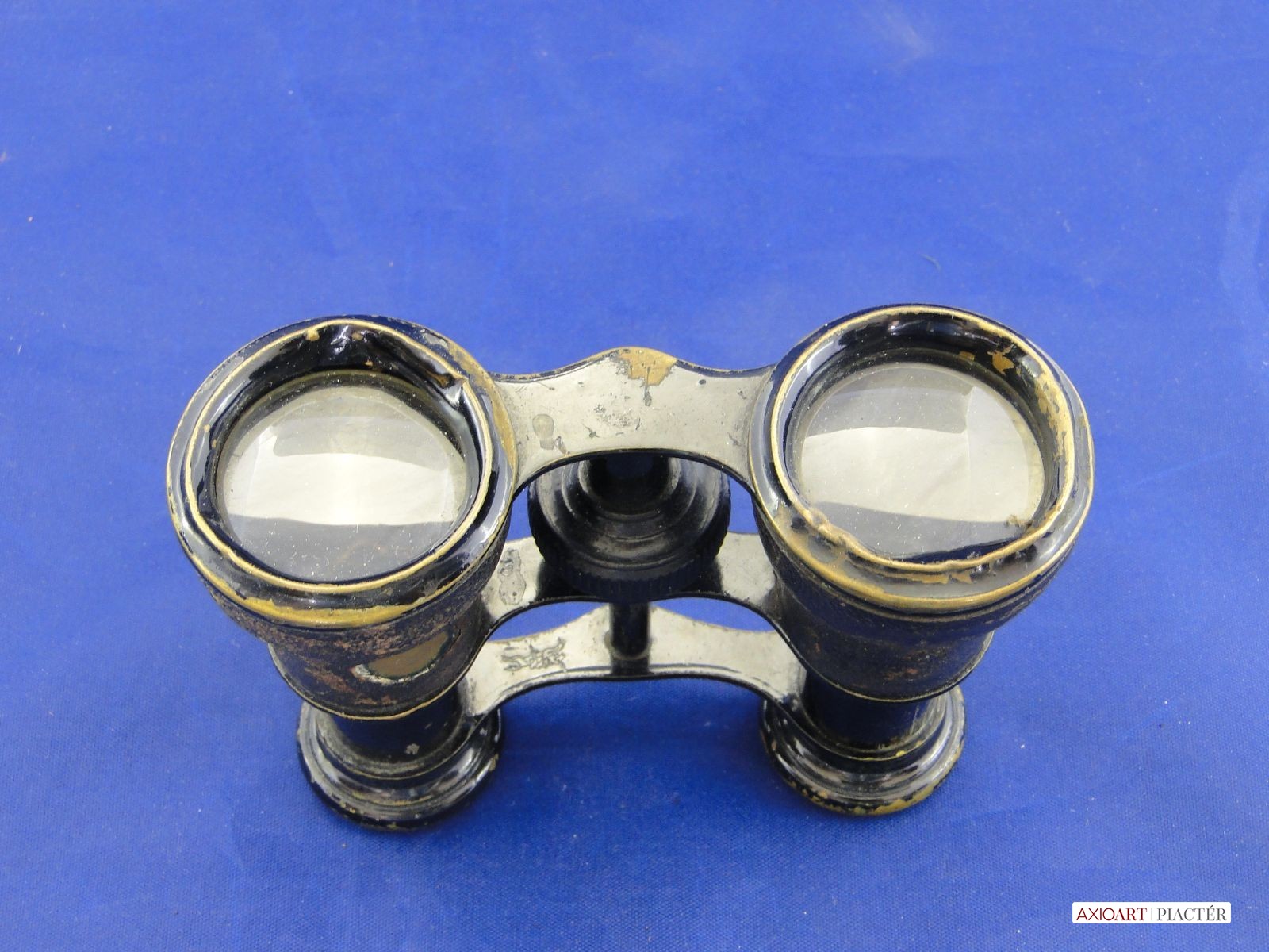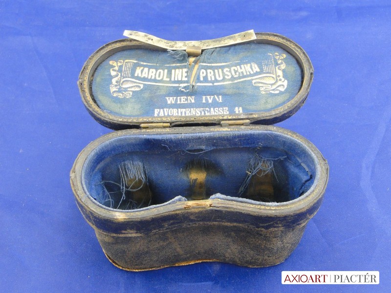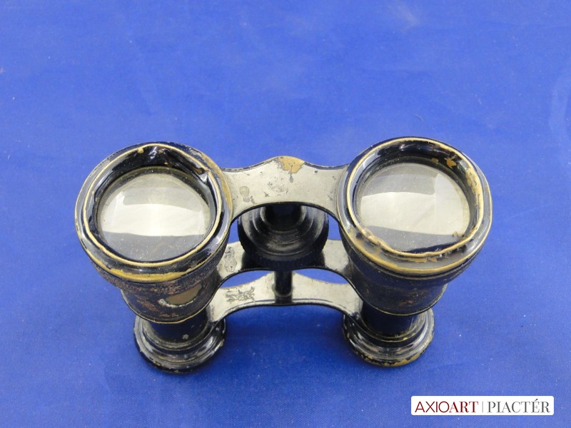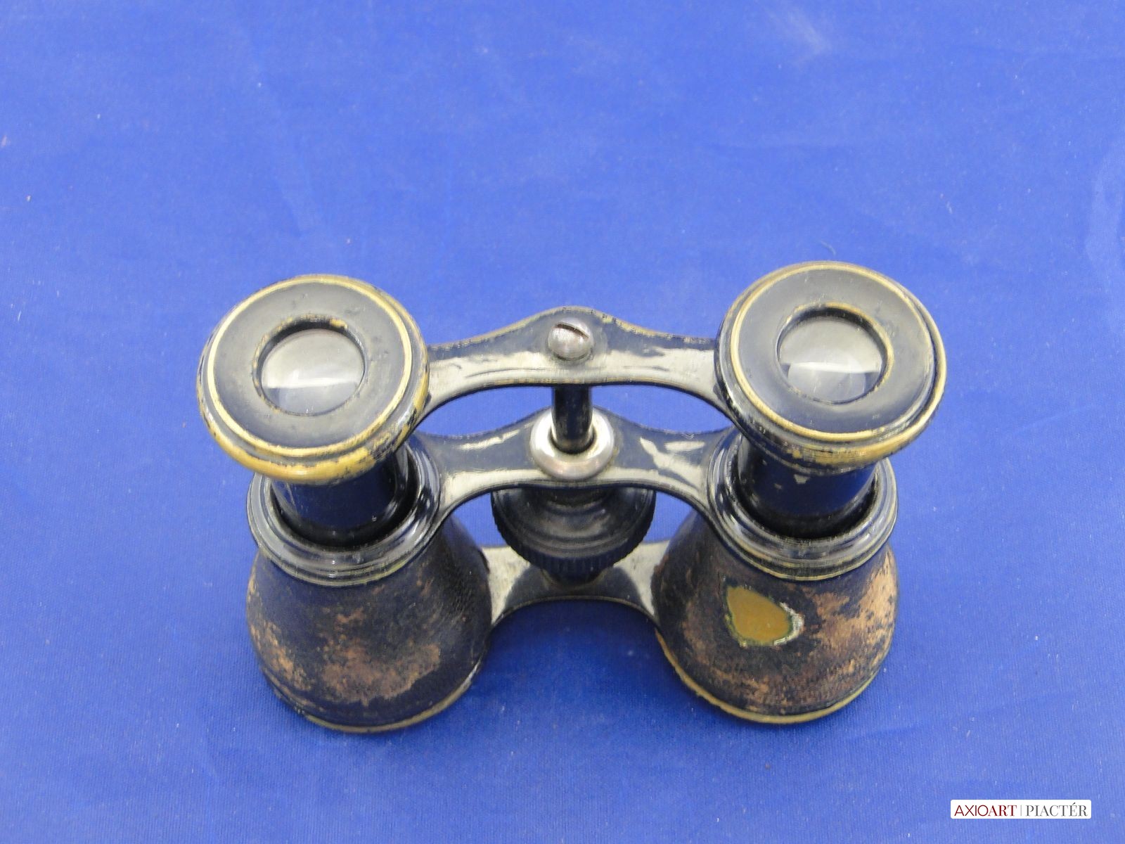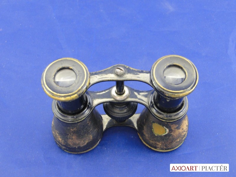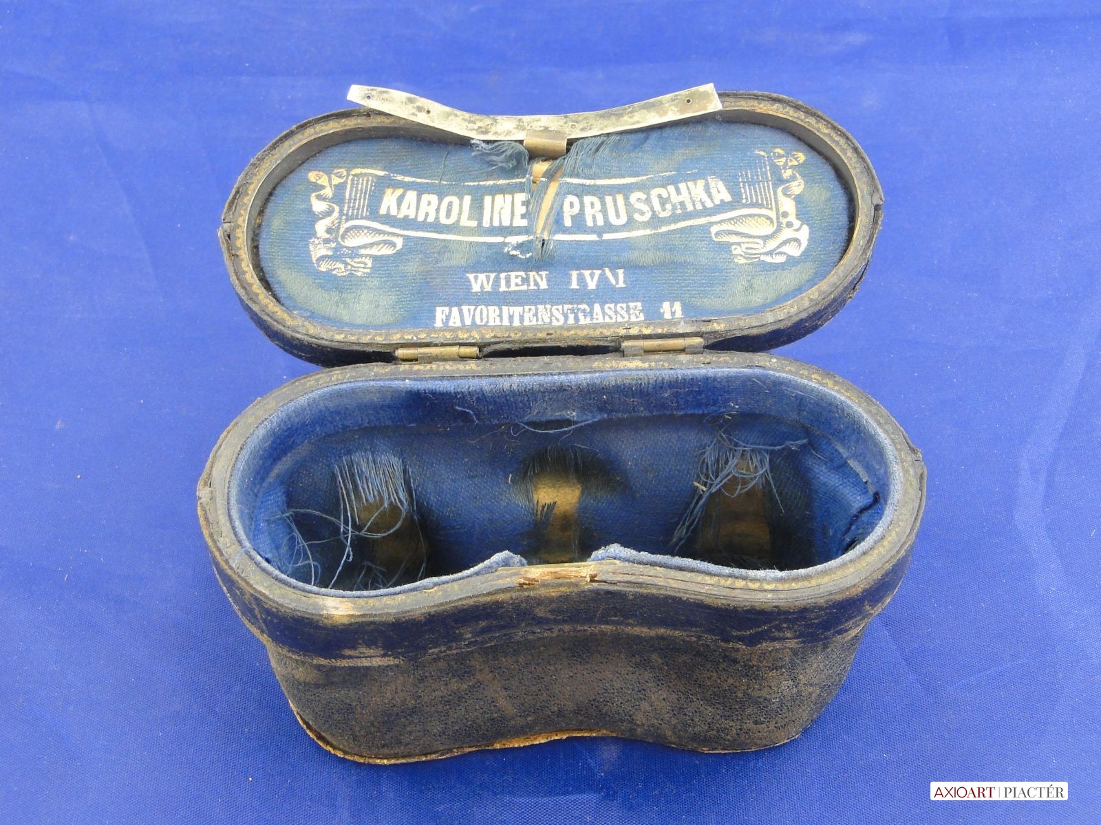 [6625/X018] Nagyon régi kisméretű réz színházi távcső, látcső, kukker eredeti királykék selyemmel bélelt bőr tokjában. A tokban felirat: KAROLINE PRUSCHKA WIEN FAVORITENSTRASSE A távcső tökéletesen működik. Szélesség: 5.5 cm Hosszúság: 10 cm Súly: 0.2 kg