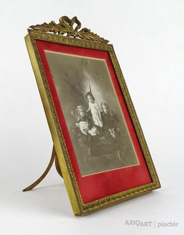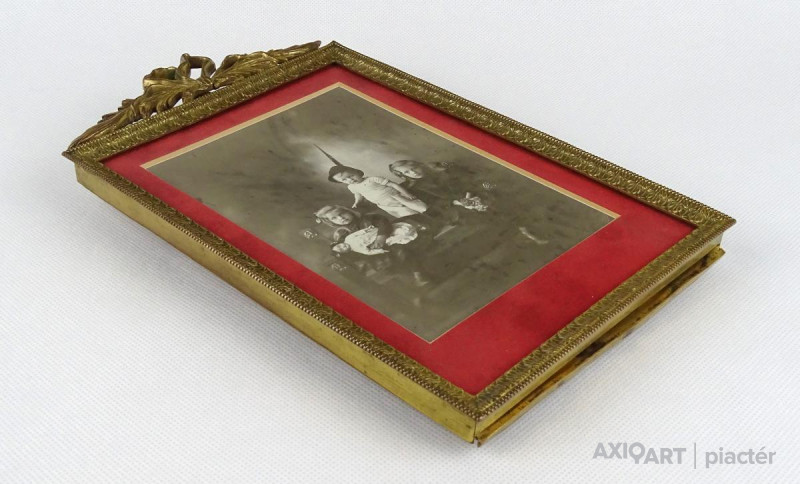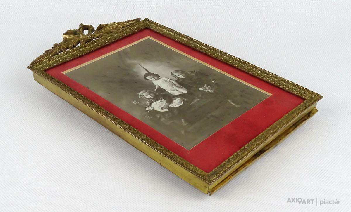 Antik Belgráder Soma gyermek fotográfia masnis jelzett bronz keretben