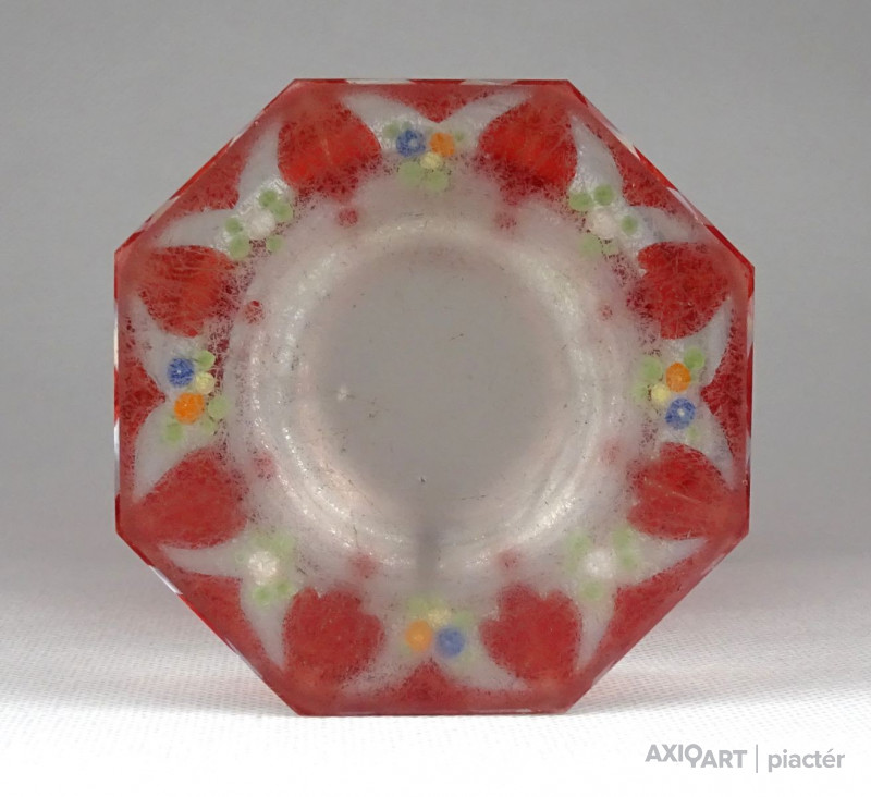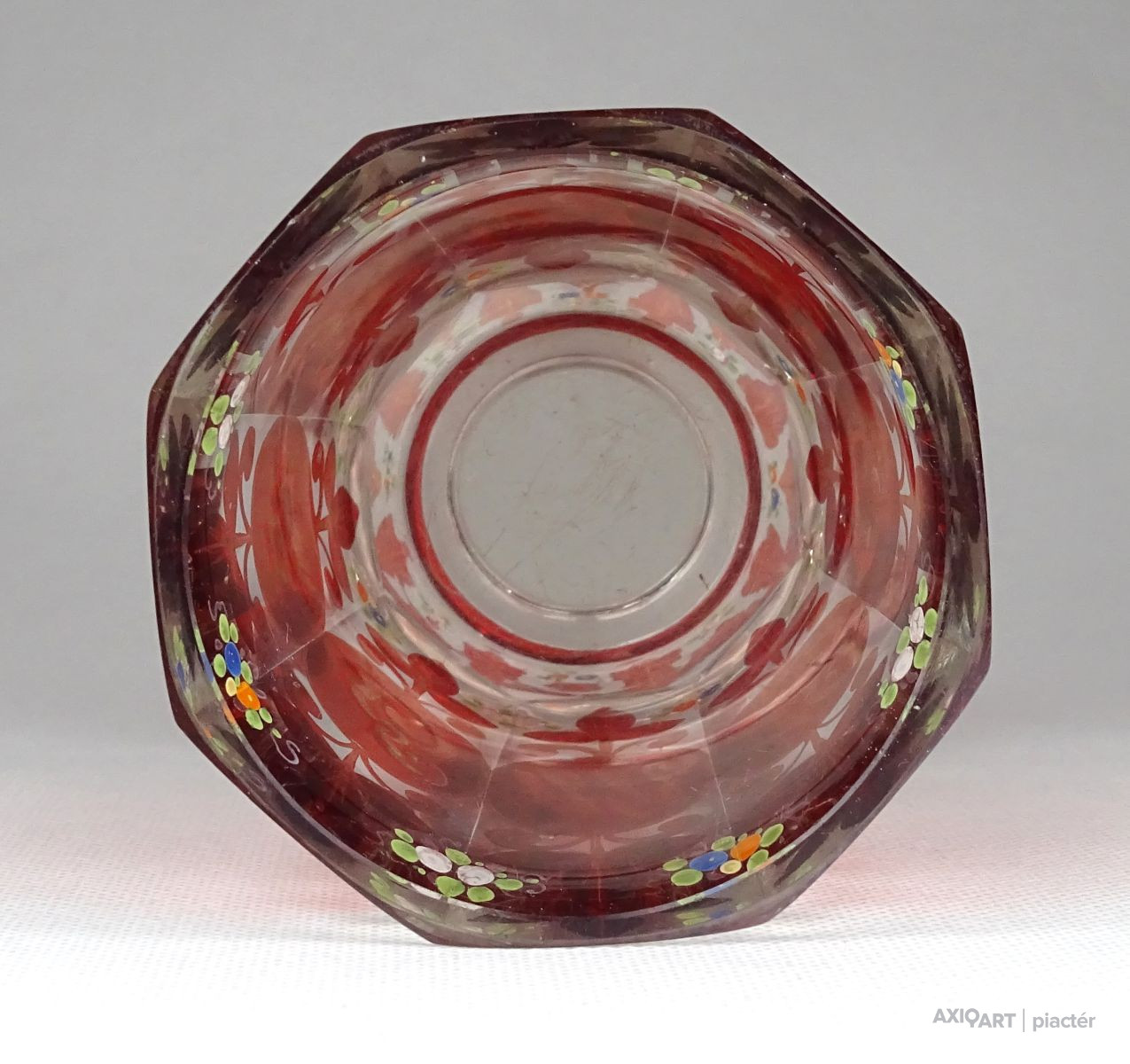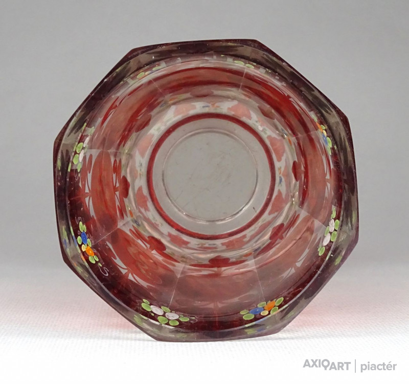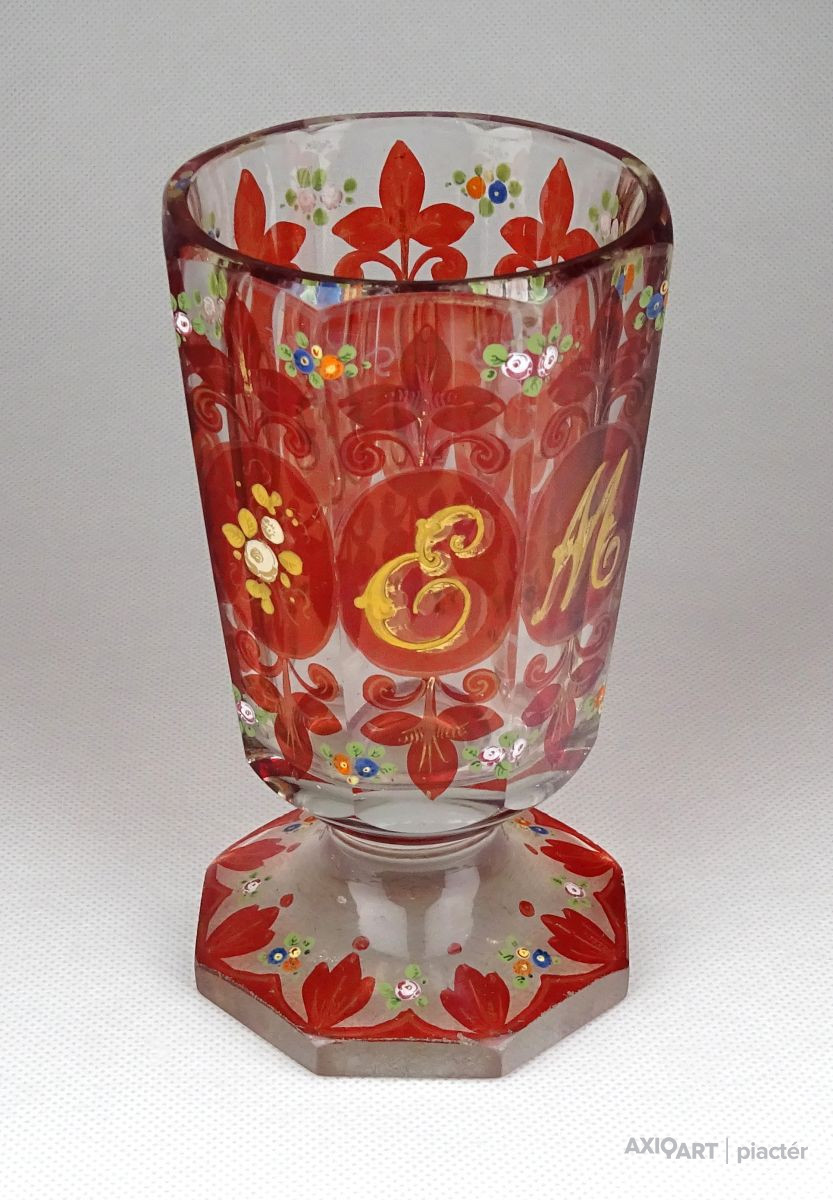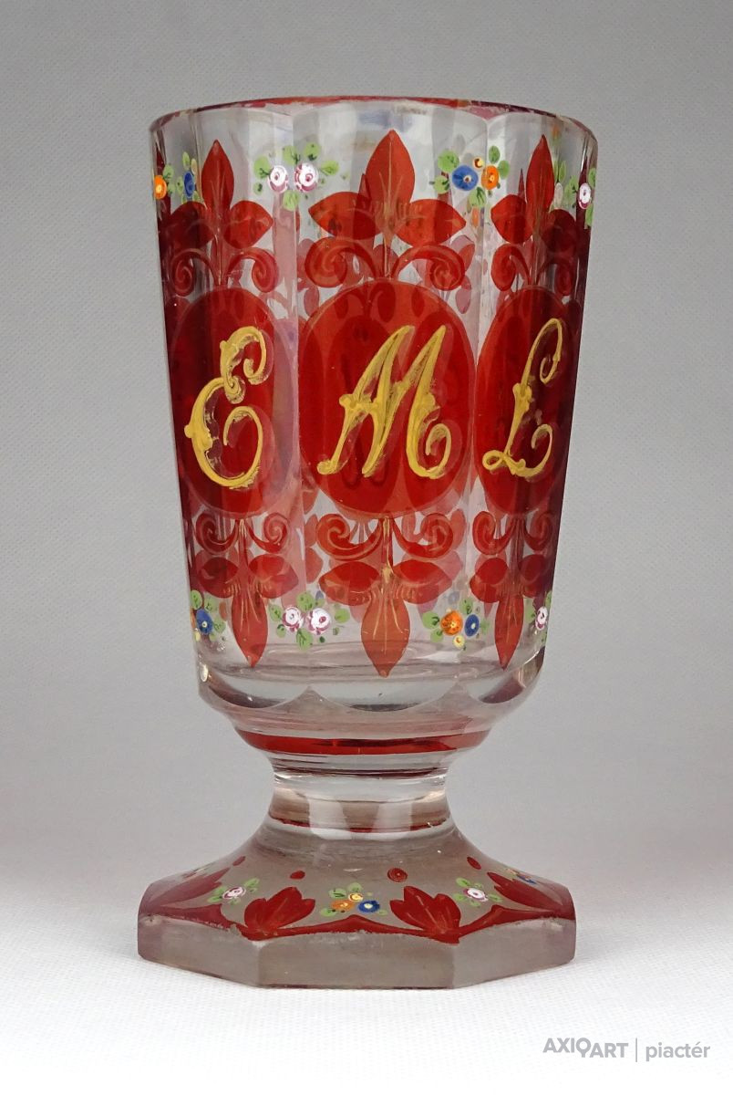 Antik bíborpácolt Biedermeier talpas emlékpohár 13.5 cm