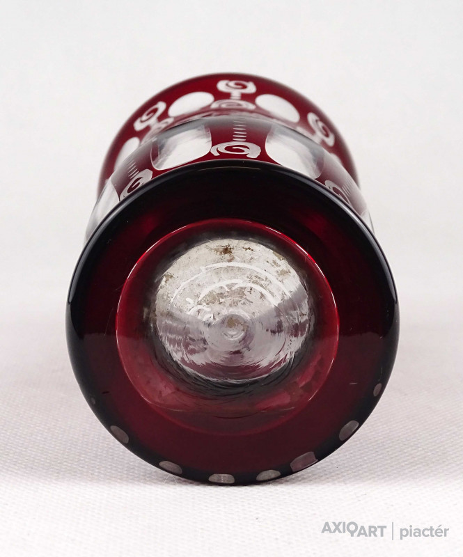 Antik bíborpácolt csiszolt üveg Eggermann talpas váza 16 cm