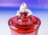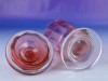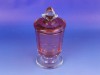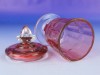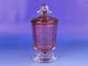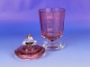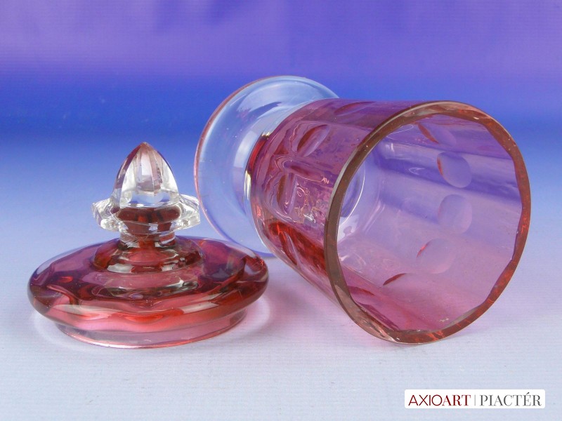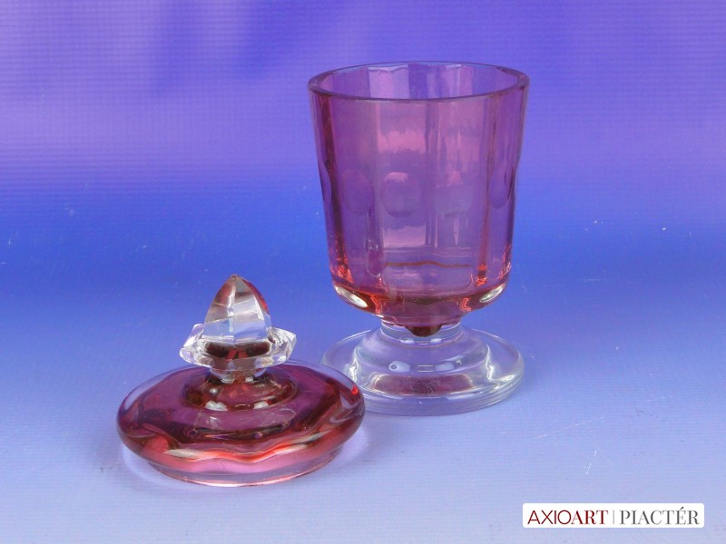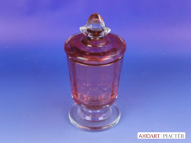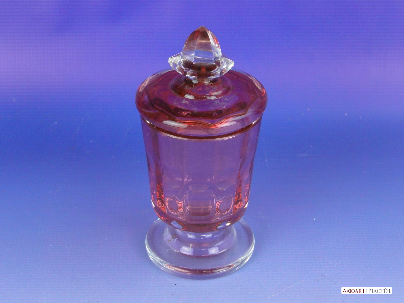 Antik, szép állapotú Biedermeier, rózsaszín, fedeles, talpas üveg pohár, kehely az 1800-as évek végéről.