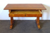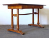 [1F625/UZ-N] Antik, szép állapotban megmaradt cseresznyefa furnéros széles Biedermeier asztal, íróasztal. Egy darab nagy méretű fiókkal rendelkezik, rajta címerpajzs alakú réz zárcím látható. Korából adódó kisebb furnérhibák találhatók rajta. Magasság: 77 cm Szélesség: 66 cm Hosszúság: 136.5 cm