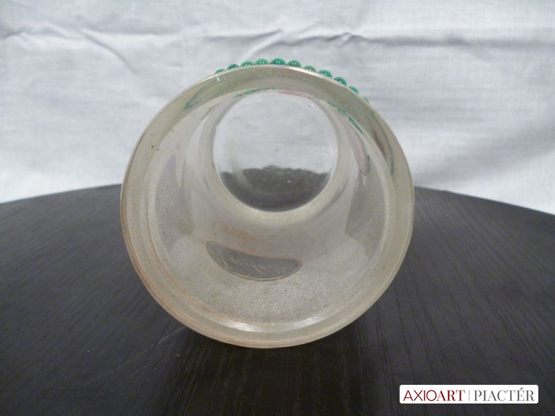 Elején látható rózsás kézi festésű, gyöngy szerű plasztikus üveg dísz veszi körül.