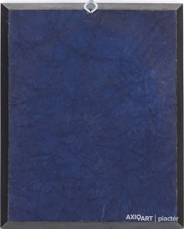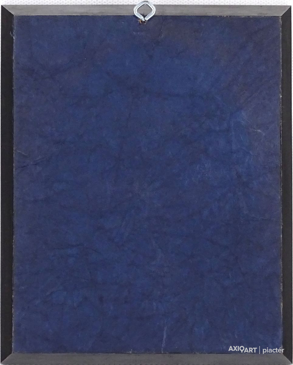 [1Y029/Z018] Olaj farost festmény, üveglap mögött, hibátlan képcsarnokos keretben. Hátoldalán Képcsarnok Vállalat papír címkéje: A művész neve: SCHÉNER MIHÁLY A kép címe: TÁJ Magasság: 66.5 cm Szélesség: 86 cm Súly: 6.54 kg Schéner Mihály festő, grafikus, szobrász, keramikus, bábtervező Medgyesegyháza, 1923-01-9 Elhalálozott: Budapest, 2009. május 11. Honlap: http://www.kormendigaleria.hu/kiadvany.html 1942-1947: Magyar Képzőművészeti Főiskola, tanára: Rudnay Gyula. 1978: Munkácsy-díj; 1984: érdemes művész; 1989: kiváló művész; 1995: Kossuth-díj. 1992-től a Magyar Művészeti Akadémia, 1993-tól a Széchenyi Irodalmi és Művészeti Akadémia tagja. 1956-ig tanított. 1982: Nagyatádi Faszobrász Alkotótelep, 1985: Nemzetközi Acélszobrász Alkotótelep, Dunaújváros. A stílusában felismerhető, mégis sokféle műtárgyat létrehozó ~ gazdag, állandóan alakuló életműve a folyton változó világban helyét kereső, az alkotói szabadságot megvalósító XX. századi képzőművész példázata lehetne. Magát expresszív-szürrealista alkotónak nevezi. Egyaránt dolgozik festékkel, textillel, fával, fémmel. Rajzol, szerkeszt, farag, épít, gyúr, varr és ragaszt, felhasználja a mézesbábok öntőformáit. Festő, rajzoló, textilszobor- és bábkészítő, fazekas, asztalos, esztergályos. Háromlépcsős folyamatban gondolkozik: rajzban tervez, majd fest, szobrot készít, “formába önt”, mindig a végső plasztikai megoldást keresi. Ami állandó és mégis játékosan változékony megjelenésű Schéner művészetében, az a gyermekkori emlékek által meghatározott népi mesterségek iránti tiszteletet kifejező motívumkincs, a tárgyi folklór formakészlete, amely már-már kézjegyként ismétlődik munkáin. Mitologikussá nőtt képzelete új lényeket teremt, pl: a Pigulát, amely disznótestű, emberfejű teremtmény. Schéner festményein a szürrealista motívumokat konstruktív szerkezetbe rendezi, a geometriát és az organikus természeti motívumokat egyaránt beépíti műveibe. A népi, népművészeti formakincsből merített lovas huszárok, betyárok, szegénylegények cifra szűr mentéje, piros csákója, fekete csizmája, az önálló életet élő zsinórdíszek és mézeskalács bábok, a kiskocsik a gyermekkori vásárok, búcsúk színes forgatagába vezet. A primér motívumokat aztán felváltják a vastagon felhordott felületbe karcolt jelek, vonalhálózatok, amelyek a játszó gyermek homokba rajzolt ábráit, a pásztorember fába vésett üzeneteit, az ősember barlang falába rótt mágikus jeleneteit idézik meg. A művész pillanatnyi érdeklődésének megfelelően a színek búvópatakként tűnnek el és jelennek meg ismét. A 60-as években leginkább a formákkal való játék érdekelte, a festmények felülete egyre gazdagodott: a táblaképek felületén applikációk jelentek meg, vagy lemállasztott rétegek hagyták maguk után hiányukat, motívumok nélküli ősformák, archetipikus képzetek bukkantak fel művészetében. A véletlenszerűnek látszó rétegekkel való játék azonban tudatos komponálás eredménye, amely később nyilvánvaló ritmusnak és formai szerkesztettségnek adja át a helyét, mint a Törvénytáblák c. sorozaton. A különböző művészi kifejezési formák egymásra termékenyítő hatással vannak, át- meg áthatják egymást. Textilszobrai, amelyekkel új műfajt teremtett, ugyanazzal az automatikus, expresszív-szürrealista módszerrel készülnek, mint festményei. A hagyományosan a népművészetben alkalmazott anyag, a filc lehetőséget ad a népi formakincs felelevenítésére, amely azonban a művész különös szürrealista átiratában jelenik meg. A szívekkel kivarrt, zsinórdíszes Posztókotlós c. művén mézesbábok lógnak, hátán huszárok lovagolnak. Egész sor textilből készült kéz-plasztikát alkot, amelyeket az ujjakra rávarrt díszekkel öltöztet, személyesít meg. A színes-különös világból aztán ~ újra puritán képi és formai rendbe juttatja el a nézőt, majd nemsokára tépett, gyűrt, vágott, csorgatott, repedezni hagyott szenvedélyesen vonagló képi felületeket hagy hátra. Schéner készített apró gyermekjátékokat, térstruktúra-tereket, mászókákat is. A magyar népi formák mellett szürreális játékaiban gyakran alkalmaz görög mitológiai alakokat, “elkentaurosodott” lovakat, Gorgó-fejeket, sellőket, hárpiákat, Pán-ábrázolásokat. Schéner nemcsak saját művészetéről publikál, hanem művésztársairól is számos írása jelenik meg, elsősorban az Új Auróra c. folyóiratban, amelynek egy ideig főmunkatársa volt. Irodalom kiállítása, Magyar Építőművészet, 1962/4. Húsz év után, Művészet, 1965/4. BOZÓKY M.: ~, Tiszatáj, 1968/5. PERNECZKY G.: Nincs uborkaszezon, Élet és Irodalom, 1969. augusztus 8. BARÁNSZKY-JÓB L.: ~, Művészet, 1969/9. LÁSZLÓ GY.: ~ kaposvári kiállítása, Jelenkor, 1969/4. MAJOR M.: Pásztorok, betyárok, huszárok - kezek, Tükör, 1970. szeptember 15. FRANK J.: Bemutatjuk ~t, Élet és Irodalom, 1972. május 6. ról kiállítása ürügyén, Képzőművészeti Almanach, Budapest, 1972 Sötétkék kokasok, Élet és Irodalom, 1973. szeptember 9. MAJOR M.: ~ játékai, Élet és Irodalom, 1974. július 27. BARTA J.: Egy különös művész, Alföld, 1974/6. VADAS J.: Szárnykészítők, Élet és Irodalom, 1975. október 4. JUHÁSZ F.: A halál ellen játszani, Élet és Irodalom, 1975. május 17. PAP G.: Kincsek és műkincsek, Művészet, 1975/6. P. SZŰCS J.: Az utak kettéválnak, Művészet, 1978/3. Békési művészet, Művészet, 1978/7. SZAMOSI F.: ~ [kismonográfia], Budapest, 1978 VADAS J.: Játék a játékkal, Élet és Irodalom, 1979. augusztus 18. NÉMETH L.: ~ műveiről, Művészet, 1979/4. MIKLÓS P.: Mit akar ez a múzeum?, Művésze