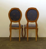 [1T176/KCS] Szép állapotú, gyönyörű Biedermeier szék pár az 1800-as évek második feléből, cca 1880. Támlája és ülőfelülete kárpitozott. Rajta szitakötő mintás szürkéskék kárpittal.