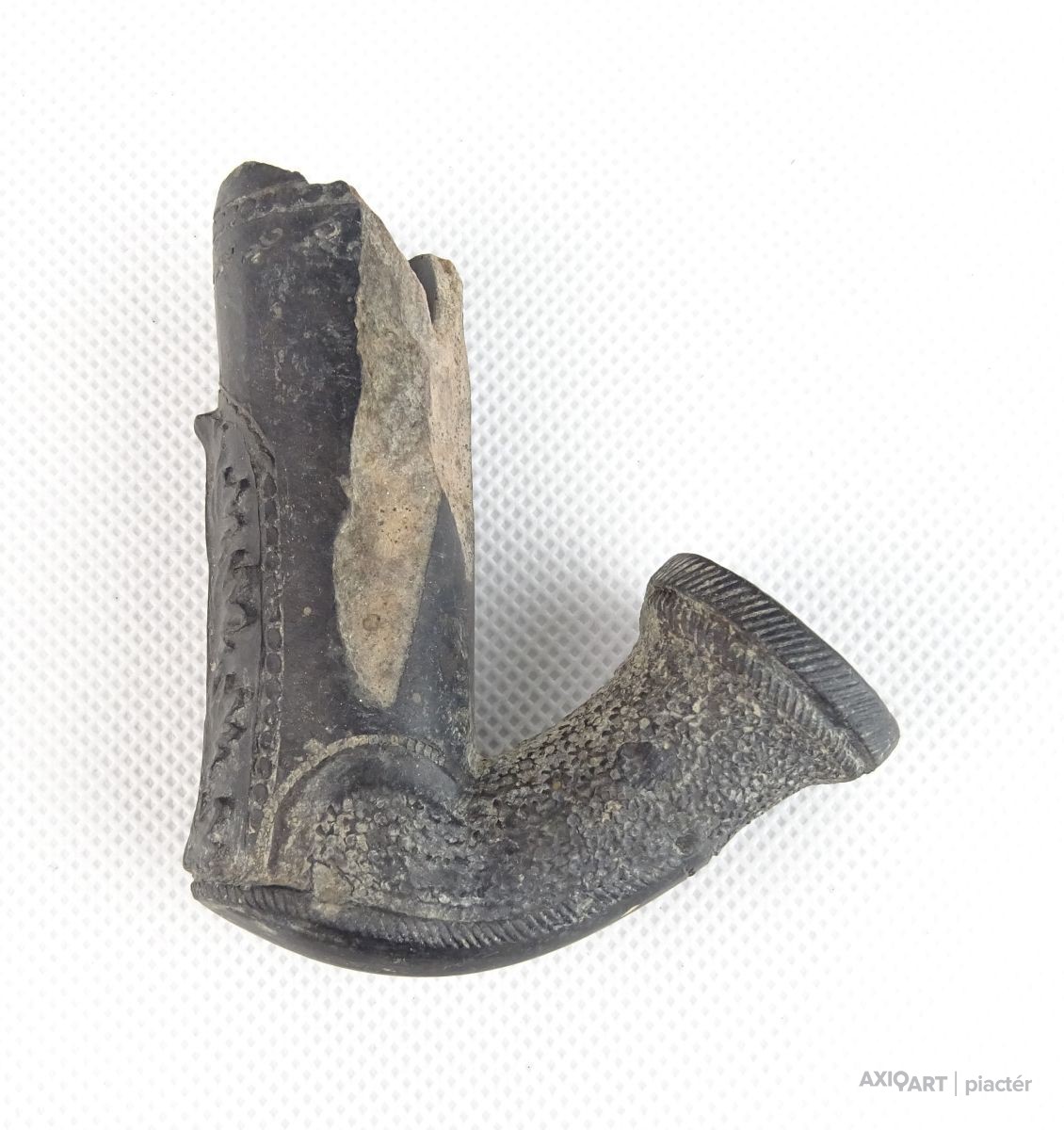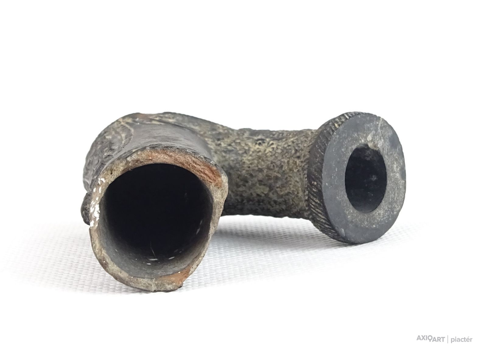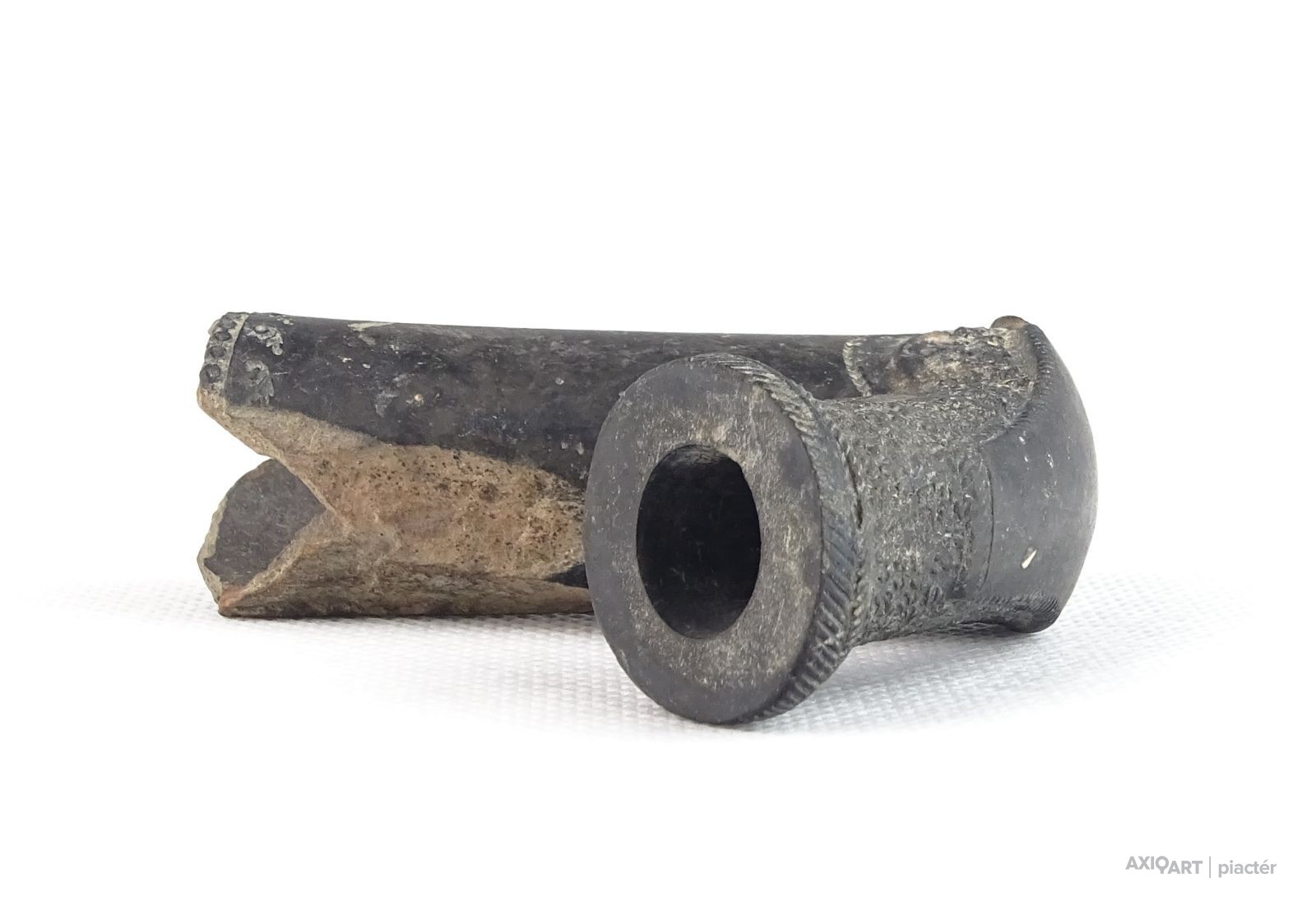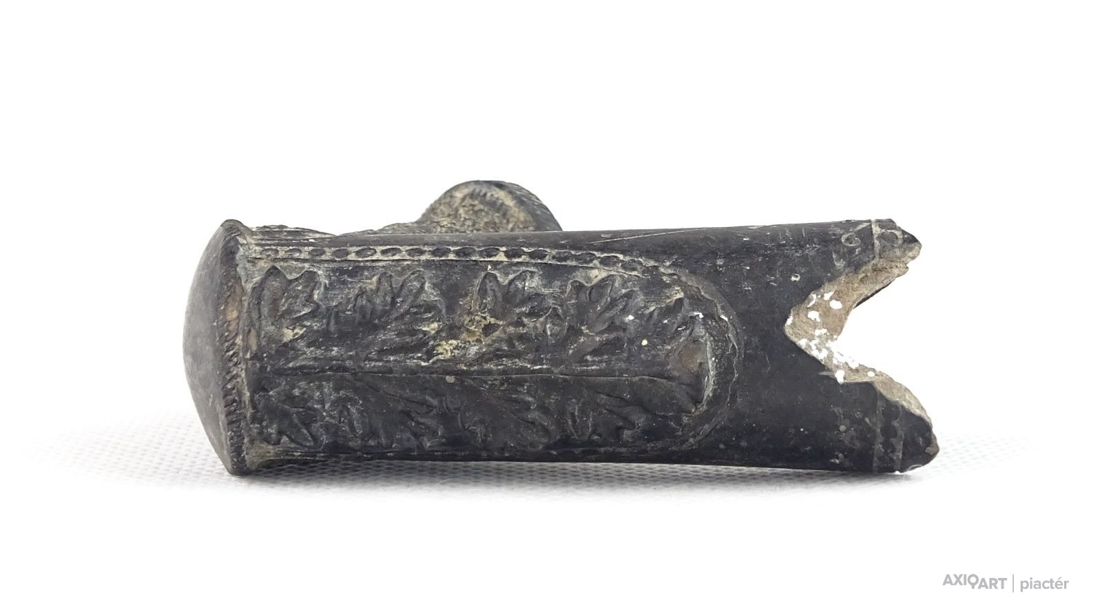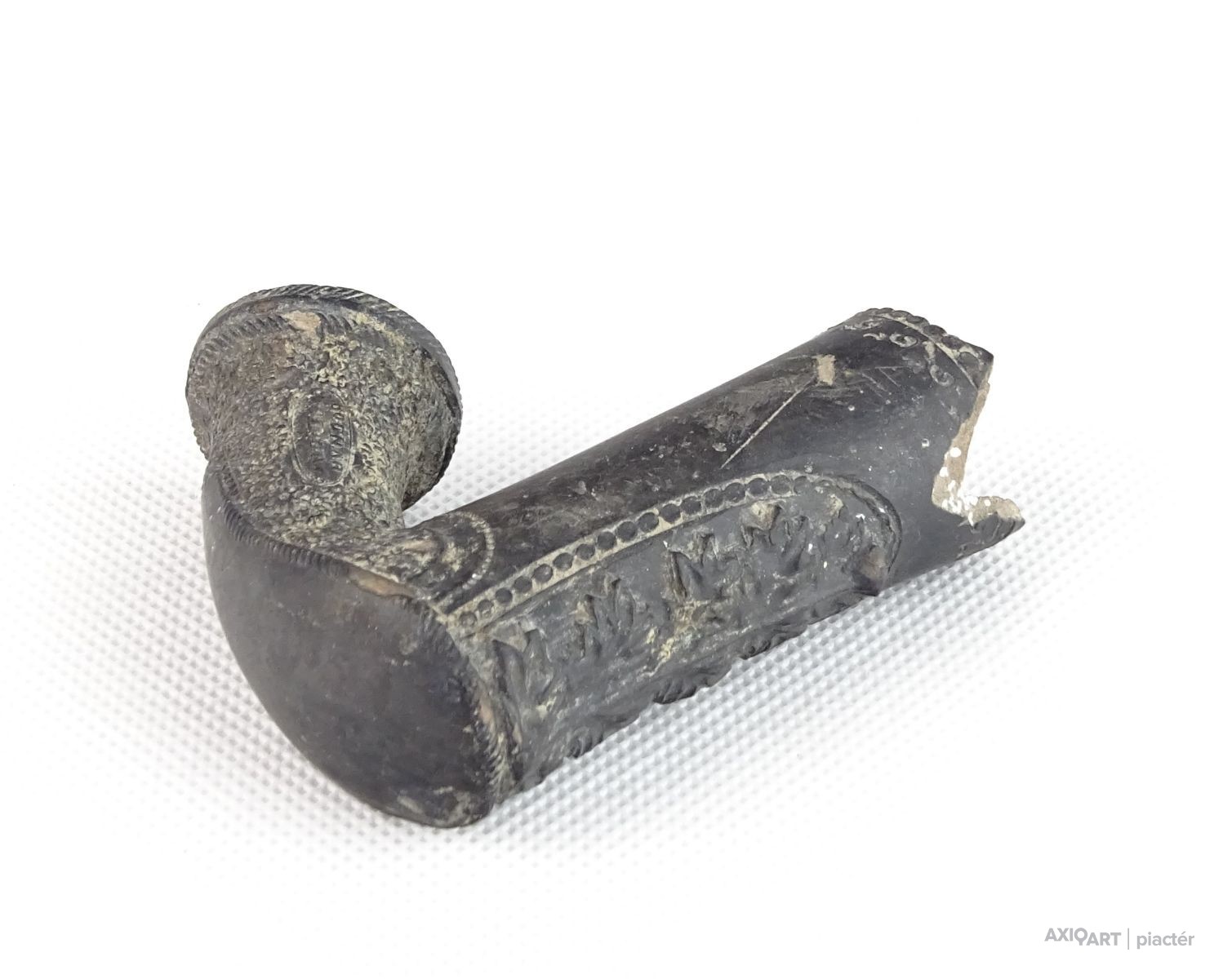 [0T764/X143/1] Antik, XIX. századi jelzett, körmendi fekete cserép pipa fej. Jelzés: BODNAR SCHEMNITZ Magasság: 7 cm Szélesség: 2.2 cm Hosszúság: 6 cm Súly: 0.045 kg